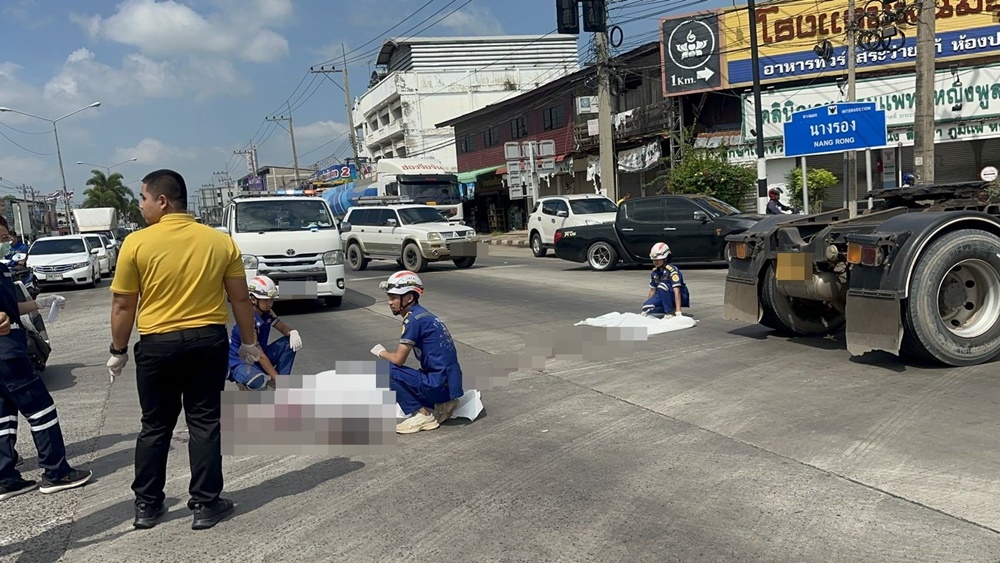 เมื่อเวลา 11.00 น. วันที่ 20 ต.ค.68 ร.ต.อ.ฤกษ์ วิเชียร รอง สว.(สอบสวน) สภ.นางรอง จ.บุรีรัมย์ ได้รับแจ้งอุบัติเหตุรถบรรทุกเหยียบคนเสียชีวิต บริเวณสี่แยกไฟแดงไปรษณีย์นางรอง จึงรีบเข้าตรวจสอบพร้อมเจ้าหน้าที่กู้ภัยสยามรวมใจปู่อินทร์