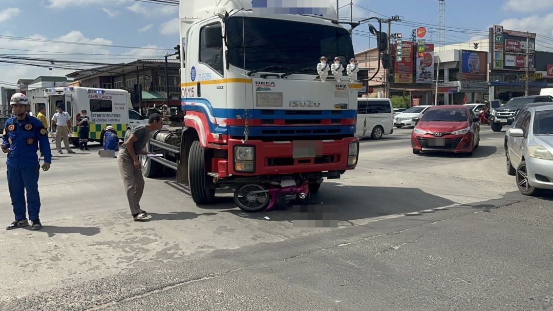 ที่เกิดเหตุพบรถสิบล้อแบบหัวลากยี่ห้ออีซูซุ ทะเบียนอุบลราชธานี จอดอยู่กลางสี่แยก โดยมีรถจักรยานยนต์ยี่ห้อฮอนด้า ทะเบียนกาญจนบุรี ถูกทับติดอยู่ใต้ท้องรถ และพบร่างของ นางอัญชลี (ขอสงวนนามสกุล) อายุ 45 ปี ชาวจังหวัดนครราชสีมา เสียชีวิตในสภาพร่างมีบาดแผลฉกรรจ์รุนแรง