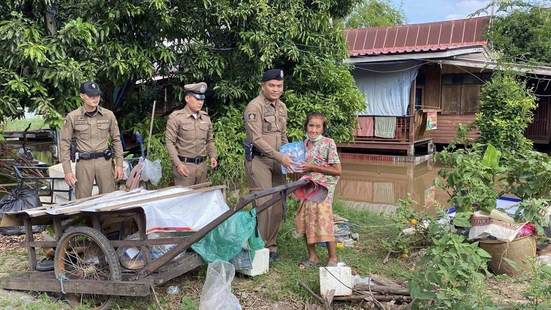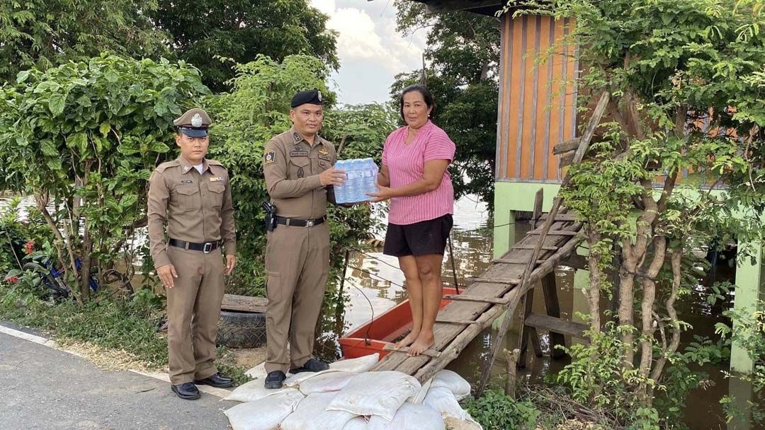 ‘ผู้การฯอ่างทอง’สั่งการสภ.เกษไชโย มอบน้ำดื่มปชช.ถูกน้ำท่วม กำชับป้องกันเข้มหัวขโมย