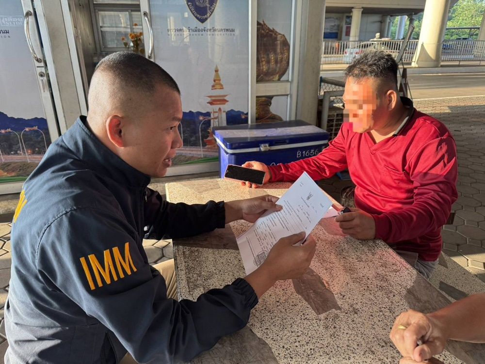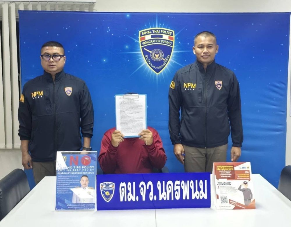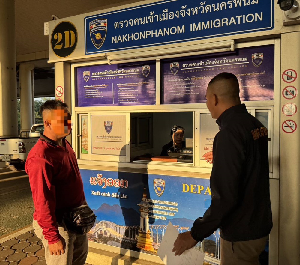 เจ้าหน้าที่ ตม.นครพนม ภายใต้การอำนวยการของ พ.ต.อ.ภัทรพงศ์ อินวรรณา ผกก.ตม.ฯ ได้ตรวจพบผู้ต้องหาตามหมายจับขณะปฏิบัติหน้าที่ โดย นายขวัญชัย (นามสมมุติ) อายุ 42 ปี ภูมิลำเนาจากสกลนคร ได้ยื่นหนังสือเดินทางเพื่อเดินทางออกไปยัง สปป.ลาว พร้อมญาติรวม 7 คน