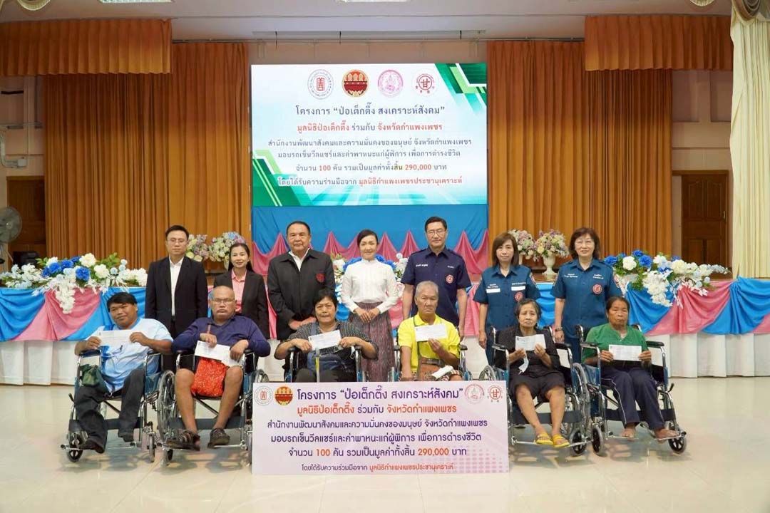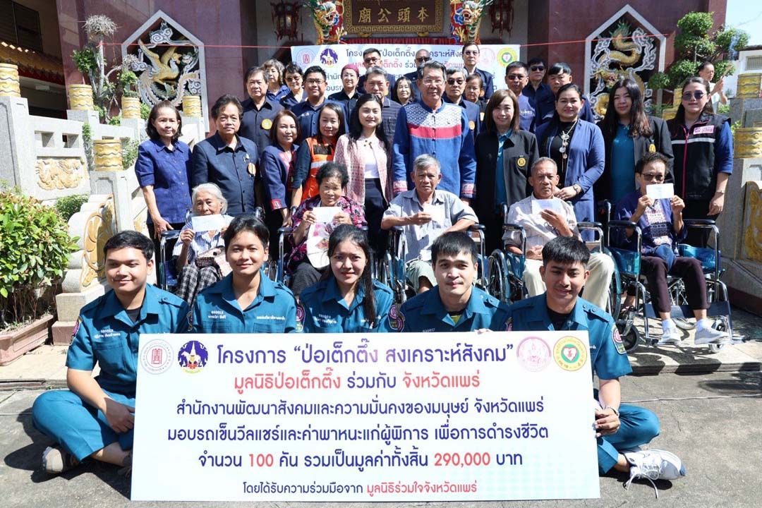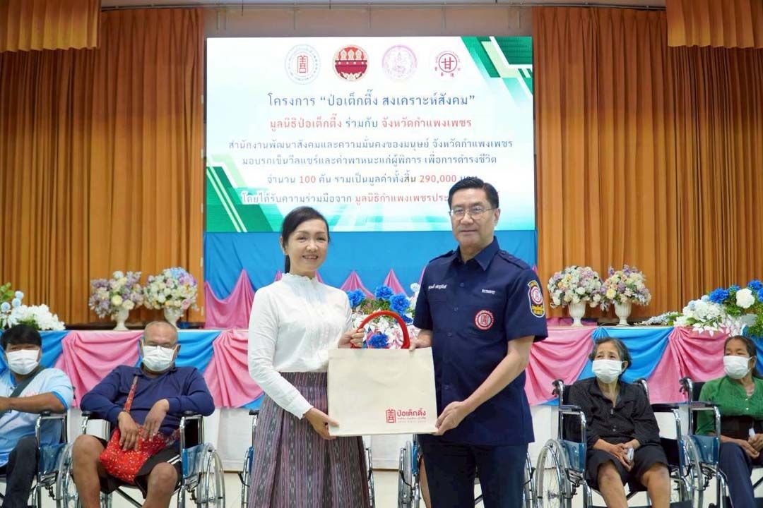 สำหรับโครงการ “ป่อเต็กตึ๊ง สงเคราะห์สังคม” โดยการมอบเข็นวีลแชร์แก่ผู้พิการ มูลนิธิฯ ได้ดำเนินการมาเป็นระยะเวลานับ 10 ปี ซึ่งในปี 2568 นี้ มูลนิธิฯ กำหนดดำเนินการมอบเข็นวีลแชร์พร้อมค่าพาหนะแก่ผู้พิการ รวม 5 จังหวัด ประกอบด้วย จังหวัดบุรีรัมย์ ชัยภูมิ หนองบัวลำภู แพร่ และกำแพงเพชร คิดเป็นมูลค่าทั้งสิ้น 1,450,000 บาท
