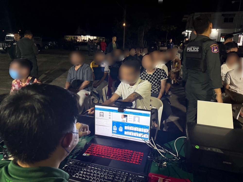 จากการตรวจสอบพบว่า คนต่างด้าวส่วนใหญ่เป็นคนสัญชาติจีน อายุระหว่าง 20-45 ปี ไม่พบเอกสารหนังสือเดินทางติดตัว ภายหลังจากทำการเปรียบเทียบข้อมูลลายพิมพ์นิ้วมือ และอัตลักษณ์บุคคล พบว่า บางรายมีประวัติต้องห้ามในระบบ