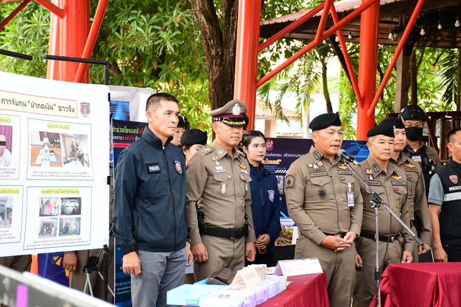 เมื่อเวลา 11.00 น.วันที่ 24 ต.ค.2568 ที่ร้านกาแฟปันรักษ์ อ.เมืองเชียงราย จ.เชียงราย พล.ต.ต.มานพ เสนากูล ผู้บังคับการตำรวจภูธรจังหวัดเชียงราย พ.ต.อ.ชลทฤษ ชัชวาลย์ รองผู้บังคับการตำรวจภูธรจังหวัดเชียงราย พ.ต.อ.เกียรติศักดิ์ จิตรประสาร ผกก.สภ.เมืองเชียงราย พ.ต.อ.อนุพันธ์ กันถารัตน์ ผกก.สภ.เชียงแสน พ.ต.ท.ธนวินท์ พวงมะลิ สารวัตรตำรวจท่องเที่ยวเชียงราย เจ้าหน้าที่ตรวจคนเข้าเมืองเชียงราย พร้อมด้วยเจ้าหน้าที่ ที่เกี่ยวข้อง ร่วมกันแถลงข่าวการจับกุม Mr.HU HAOJIE อายุ 35 ปี ชาวมณฑลหูเป่ย์ สัญชาติจีน ประเทศจีน พร้อมของกลางโทรศัพท์มือถือ ยี่ห้อ ไอโฟน รุ่น 14 สีน้ำเงินจำนวน 1 เครื่อง โทรศัพท์มือ ยี่ห้อ วีโว่ สีฟ้า จำนวน 1 เครื่อง โน๊ตบุ๊คยี่ห้อ Lenovo รหัสเครื่อง DESKTOP-20B1900 จำนวน 1 เครื่อง บัตรเอทีเอ็ม จำนวน 2,057 ใบ เงินสดทั้งหมดจำนวน 537,900 บาท และของกลางรายการอื่นๆ และอีกราย สภ.เชียงแสน จับกุมนายรุ่งโรจน์ (สงวนนามสกุล) อายุ 35 ปี ชาว อ.แม่ฟ้าหลวง จ.เชียงราย พร้อมของกลาง สมุดบัญชีธนาคาร จำนวน 34 เล่ม บัตรเอทีเอ็ม จำนวน 38 ใบ ซิมการ์ด จำนวน 39 ซิม