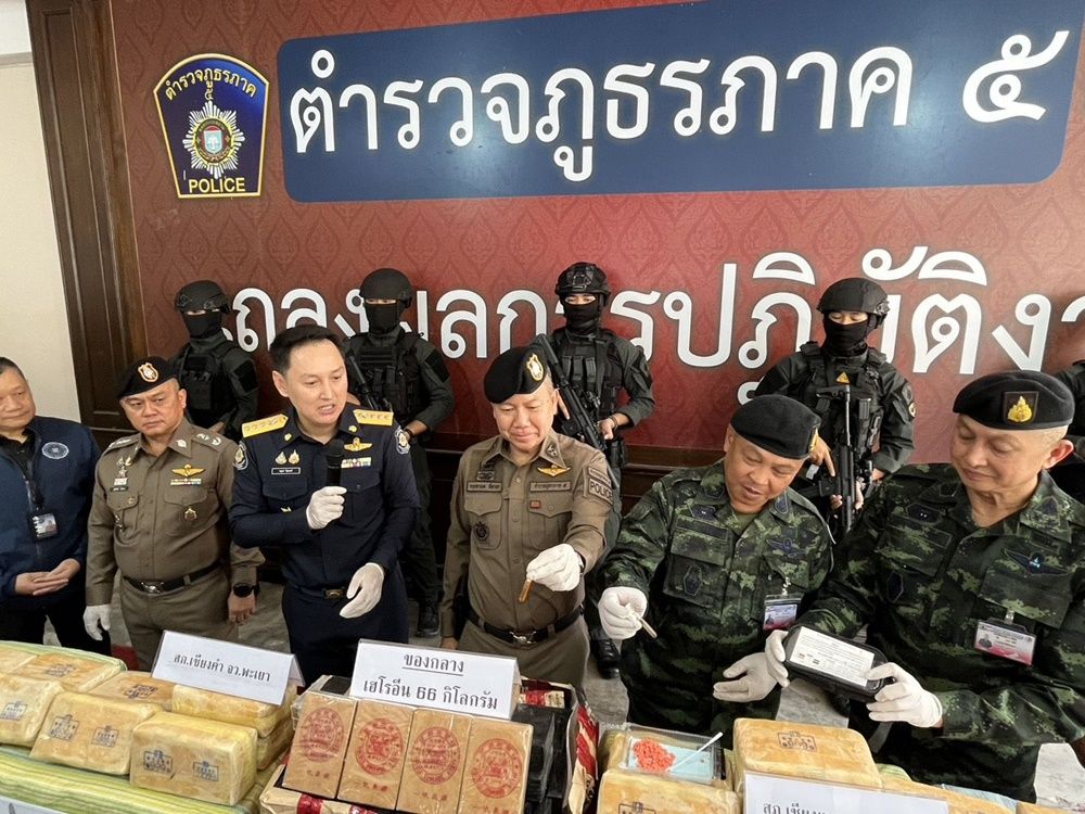 ตำรวจภูธรภาค 5 แถลงผลการจับกุมยาเสพติดครั้งสำคัญ หลังบูรณาการกำลังกับ กองกำลังผาเมือง และ ป.ป.ส. ประสบความสำเร็จในการสกัดกั้นยาเสพติดล็อตมโหฬารในพื้นที่เชียงรายและพะเยา ตรวจยึดยาบ้าได้ถึง 4,800,000 เม็ด และเฮโรอีน 66 กิโลกรัม โดย ผบช.ภ.5 ยืนยันเดินหน้าปราบปรามเครือข่ายยาเสพติดภาคเหนืออย่างต่อเนื่อง