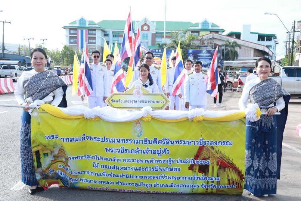 วันที่ 25 ตุลาคม 2568 เวลา 07.30 น. พระบาทสมเด็จพระเจ้าอยู่หัว ทรงพระกรุณาโปรดเกล้าฯ พระราชทานผ้าพระกฐิน ประจำปีพุทธศักราช 2568 ให้กรมฝนหลวงและการบินเกษตร น้อมนำไปถวายแด่พระสงฆ์จำพรรษาถ้วนไตรมาส ณ วัดแจ้งแสงอรุณ ตำบลธาตุเชิงชุม อำเภอเมืองสกลนคร จังหวัดสกลนคร โดยมี นายราเชน ศิลปรายะ อธิบดีกรมฝนหลวงและการบินเกษตร เป็นประธานในพิธี พร้อมด้วย นายไพจิตร เค้ากล้า รองอธิบดีกรมฝนหลวงและการบิน ด้านวิชาการ นายปราบพล โล่ห์วีระ รองอธิบดีกรมฝนหลวงและการบินเกษตร ด้านปฏิบัติ และคณะผู้บริหาร ข้าราชการ เจ้าหน้าที่กรมฝนหลวงและการบินเกษตร ข้าราชการจากหน่วยงานในพื้นที่ และประชาชนผู้มีจิตศรัทธาร่วมสร้างบุญสร้างกุศลเข้าร่วมในพิธีด้วย