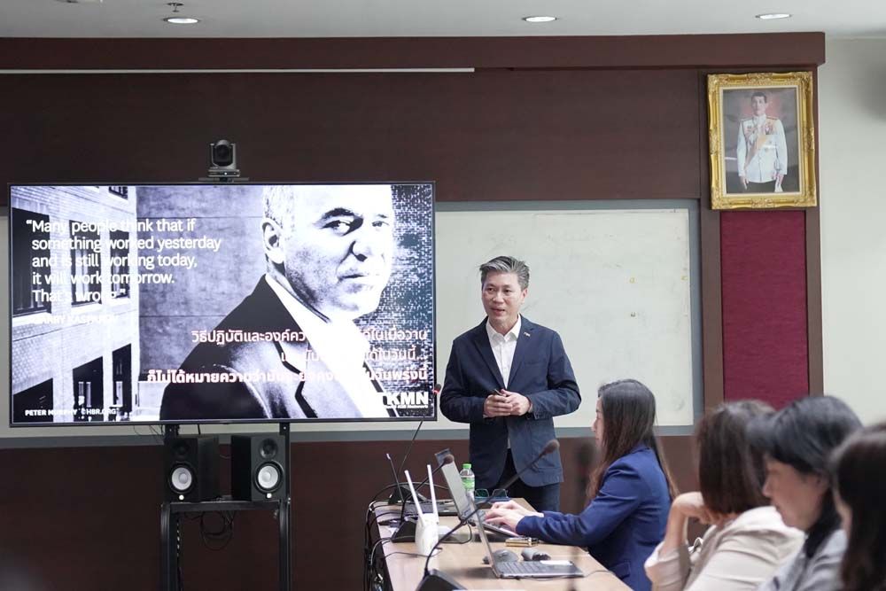 ด้าน ดร.อัมพร กล่าวว่า การบริหารความรู้เป็นกลไกสำคัญที่ทำให้องค์กรมีความยืดหยุ่นมากขึ้น เพราะ “ความรู้” ไม่ควรถูกเก็บไว้เฉพาะในเอกสาร แต่ต้องไหลเวียนและถูกนำมาใช้จริง ทั้งนี้ KM คือบริหารจัดการความรู้ให้เกิดการไหลเวียนภายในองค์กรอย่างต่อเนื่อง โดยอาจประยุกต์ใช้ AI เพื่อช่วยในการสร้างและสังเคราะห์ข้อมูลให้เป็นระบบมากยิ่งขึ้น การใช้ KM ร่วมกับเทคโนโลยี ไม่เพียงช่วยให้การตัดสินใจแม่นยำขึ้น แต่ยังเปิดทางให้องค์กรเรียนรู้รวดเร็ว และพร้อมรับมือกับการเปลี่ยนแปลงในทุกมิติ