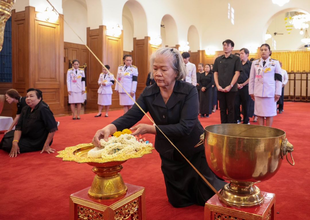เมื่อวันที่ 26 ต.ค.2568 ที่ศาลาสหทัยสมาคม ในพระบรมมหาราชวัง ตามที่ สำนักพระราชวัง เปิดให้ประชาชน เข้าถวายน้ำสรงพระบรมศพสมเด็จพระนางเจ้าสิริกิติ์ พระบรมราชินีนาถ พระบรมราชชนนีพันปีหลวง น้อมเกล้าน้อมกระหม่อม ส่งเสด็จสู่สวรรคาลัย เบื้องหน้าพระฉายาลักษณ์ ซึ่งประดิษฐาน ณ ศาลาสหทัยสมาคมในพระบรมมหาราชวัง ในวันอาทิตย์ ที่ 26 ต.ค.2568 ตั้งแต่เวลา 08.30-12.00 น.