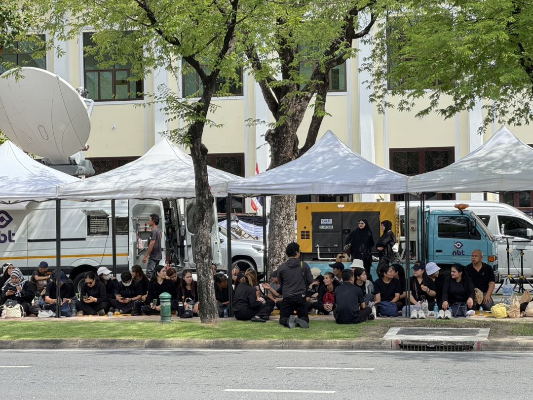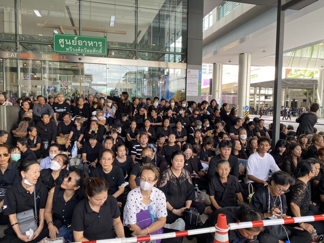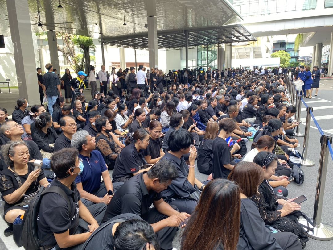 พสกนิกรร่วมอาลัย พร้อมจับจองที่นั่งตลอดเส้นทาง รพ.จุฬาฯ - ถนนอังรีดูนังต์ ส่งขบวนเชิญพระบรมศพ เคลื่อนไปพระบรมมหาราชวัง 16.00 น. ขณะที่บริเวณถนนราชดำเนิน ปชช.ต่างทยอยจับจองพื้นที่เช่นกัน