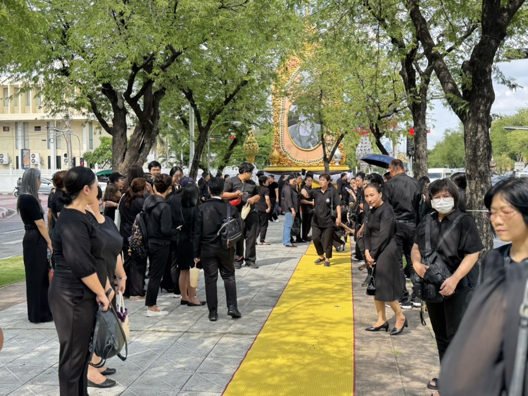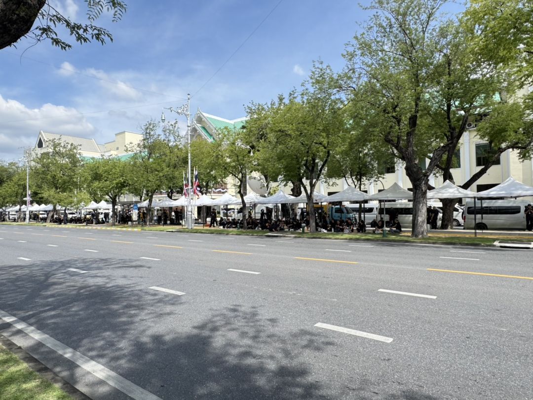 โดยขณะนี้ประชาชนเริ่มทยอยเข้าจับจองที่นั่งริมทางถนนราชดำเนิน ตามเส้นทางที่ขบวนเชิญพระบรมศพ เคลื่อนผ่านไปยังพระบรมมหาราชวัง ในเวลา 16.00 น. โดยใช้เส้นทาง จากโรงพยาบาลจุฬาลงกรณ์สภากาชาดไทย ถนนอังรีดูนังต์ ถนนพระราม 4 ถนนพญาไท ถนนศรีอยุธยา ถนนราชดำเนิน ถนนหน้าพระลาน พระบรมมหาราชวัง