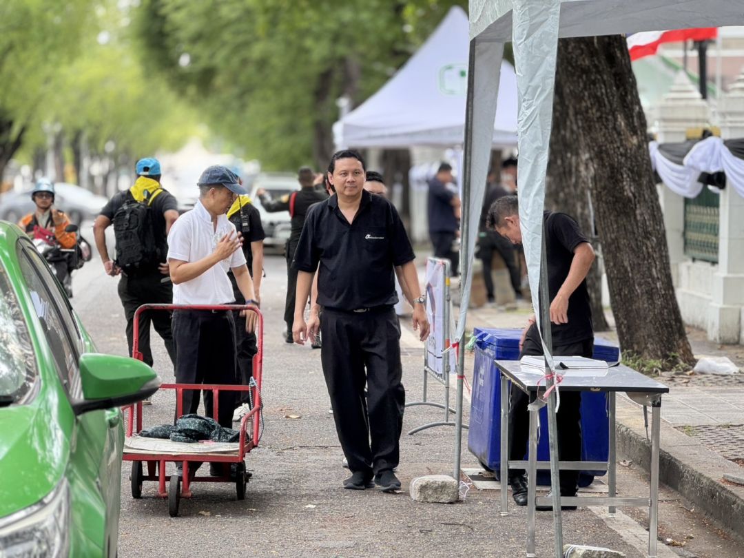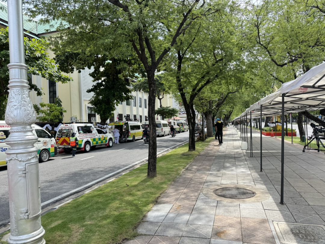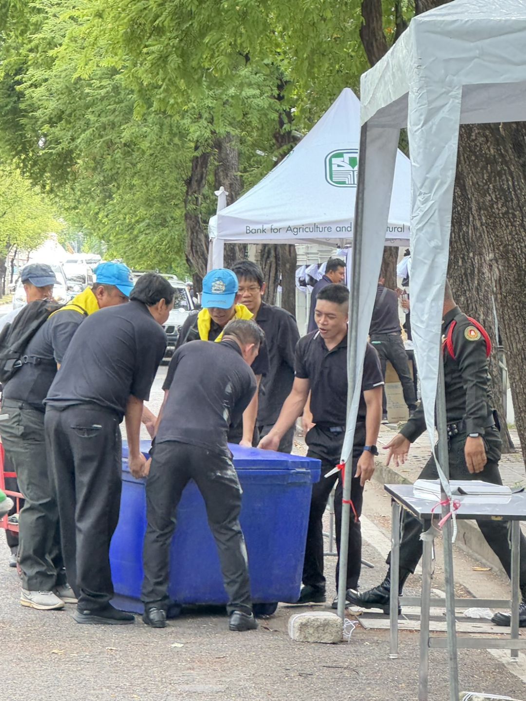 ขณะที่บริเวณถนนราชดำเนินหน้ากระทรวงเกษตรและสหกรณ์และกระทรวงคมนาคม เจ้าหน้าที่จากหน่วยงานต่างๆ ทั้งเจ้าหน้าที่กทม . และเจ้าหน้าที่หน่วยงานต่างๆ ได้เข้าเตรียมความพร้อมส่งขบวนเชิญพระบรมศพ เคลื่อนไปพระบรมมหาราชวัง โดยเฉพาะกระทรวงเกษตรฯ และ ธกส. ได้ตั้งซุ้มน้ำดื่ม เพื่อแจกจ่ายให้กับประชาชน ที่พร้อมใจแต่งกายด้วยชุดสีดำเดินทางมาร่วมแสดงความอาลัย