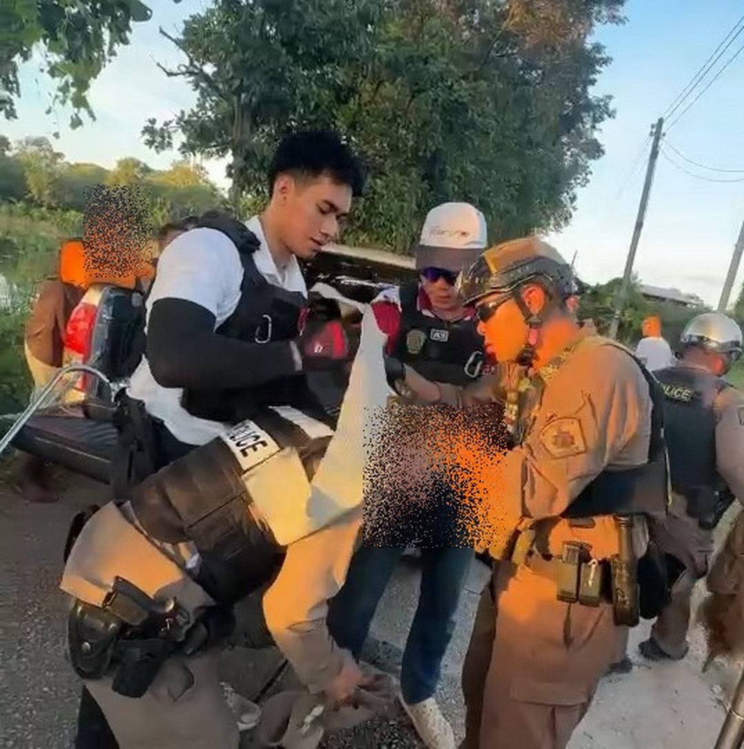ผู้ก่อเหตุคือ นายธีรภัทร อายุ 56 ปี ซึ่งมีประวัติเคยเข้ารับการรักษาอาการทางจิตเวช เจ้าหน้าที่พยายามเจรจาเป็นเวลานาน แต่ไม่เป็นผล นายธีรภัทรฯ ได้ใช้ไม้และสิ่งของขว้างออกมาจากในบ้าน และในมือถือมีด 2 เล่ม ทั้ง มีดบังตอ และ มีดขอ