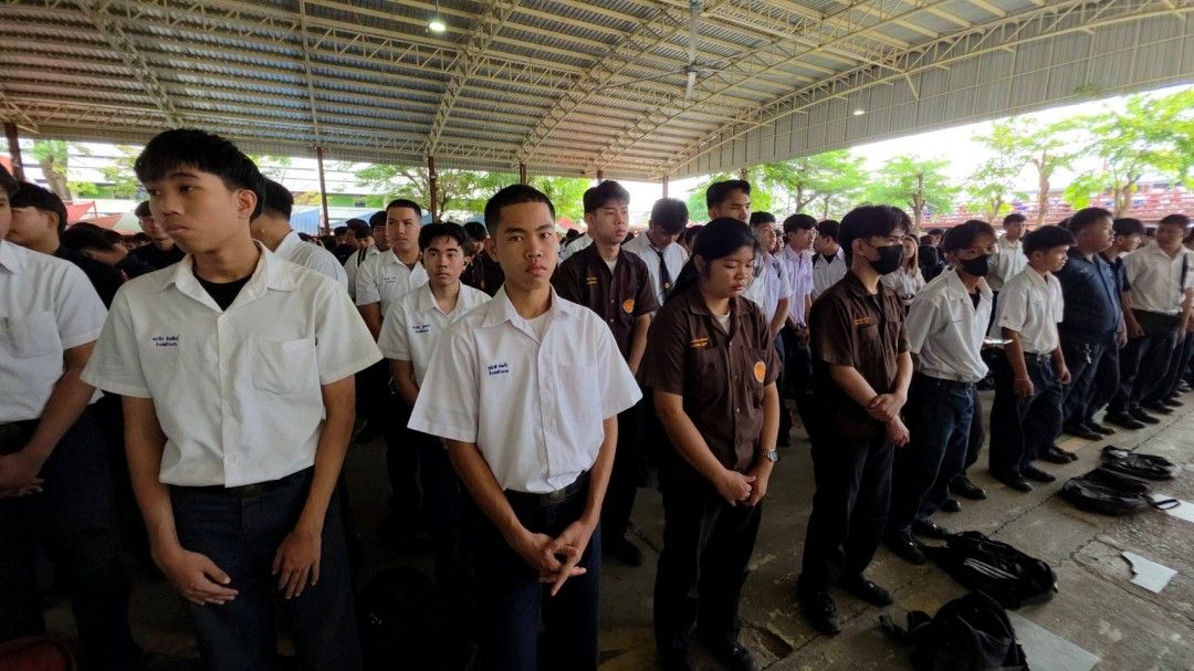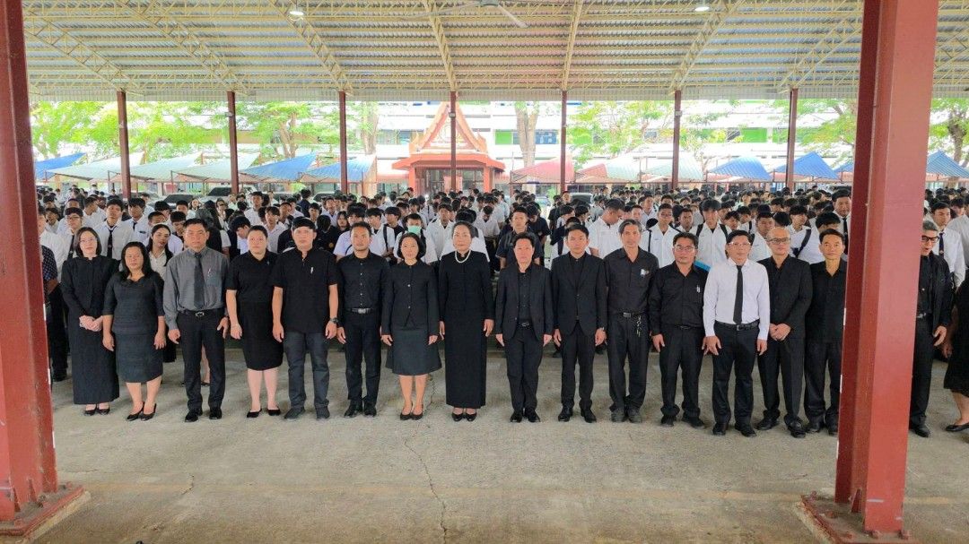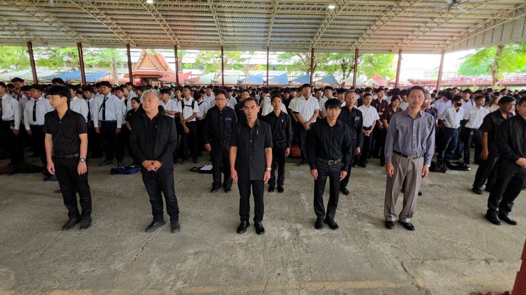 อาชีวะอยุธยาร่วมใจ! นักศึกษา 1,000 คน ยืนสงบนิ่ง 93 วินาที ถวายอาลัย ‘สมเด็จพระพันปีหลวง’ พร้อมเปิดทำริบบิ้นดำแจกฟรี