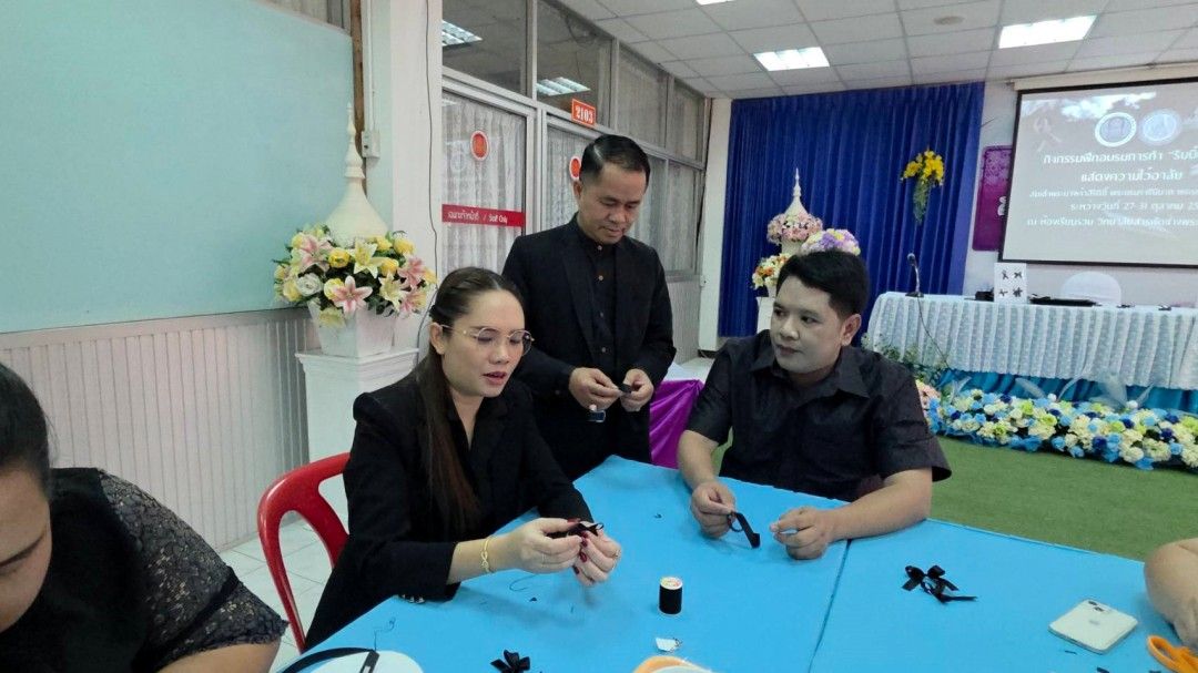 นายวีระพจน์ ปรีพูล ผู้อำนวยการวิทยาลัยสารพัดช่างพระนครศรีอยุธยา พร้อมด้วยคณะผู้บริหาร ครู และบุคลากรทางการศึกษา ได้เปิดห้องเรียนรวม เพื่อเป็นสถานที่จัดกิจกรรมระหว่างวันที่ 27-31 ตุลาคม 2568 ในเวลา 09.00 น. - 15.00 น. และได้ เชิญชวนประชาชนผู้มีจิตอาสา ให้เข้าร่วมกิจกรรมเพื่อทำริบบิ้นสีดำแจกจ่ายให้กับประชาชน โดยสามารถติดต่อขอรับริบบิ้นดำได้ที่วิทยาลัยสารพัดช่างพระนครศรีอยุธยา