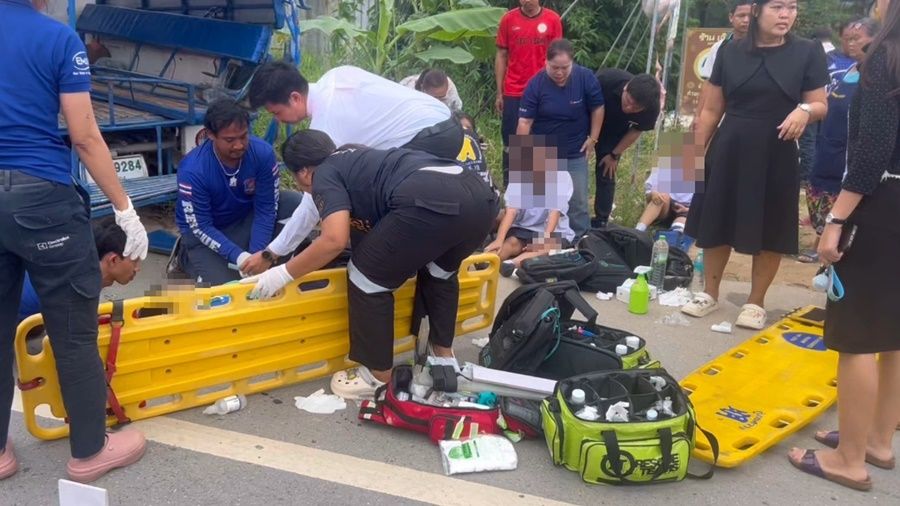 คนขับรถนักเรียน ชื่อ นางวาสนา อายุ 60 ปี บาดเจ็บสาหัสหมดสติ กู้ภัยทำ CPR แต่ไม่เป็นผล คนขับรถนักเรียนเสียชีวิตในเวลาต่อมา