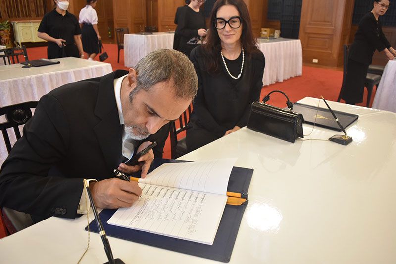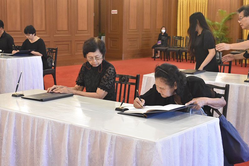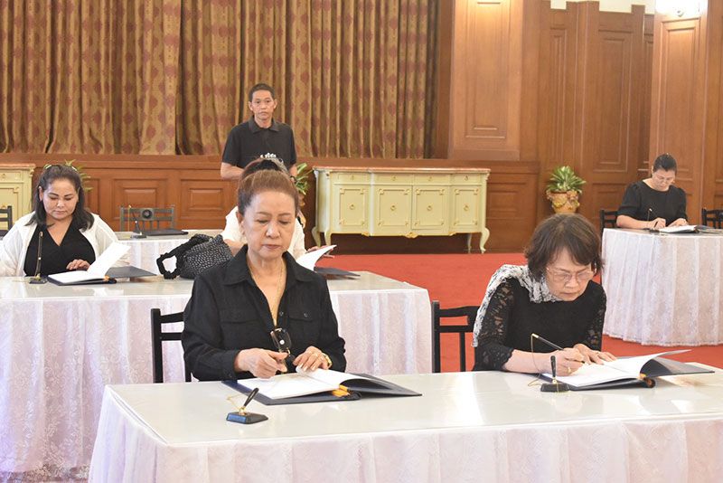 การนี้ มีบุคคลสำคัญ คณะบุคคล คณะทูตานุทูต พระภิกษุสงฆ์ หน่วยงานภาครัฐ ภาคเอกชน องค์กรอิสระ และประชาชนทั่วไป แต่งกายด้วยชุดสีดำไว้ทุกข์เดินทางเข้าถวายสักการะและลงนามถวายความอาลัยด้วยความจงรักภักดีและสำนึกในพระมหากรุณาธิคุุณอย่างหาที่สุดมิได้