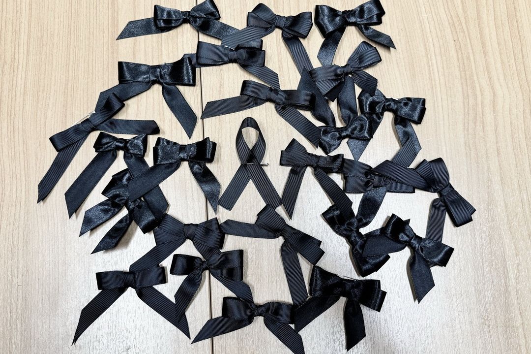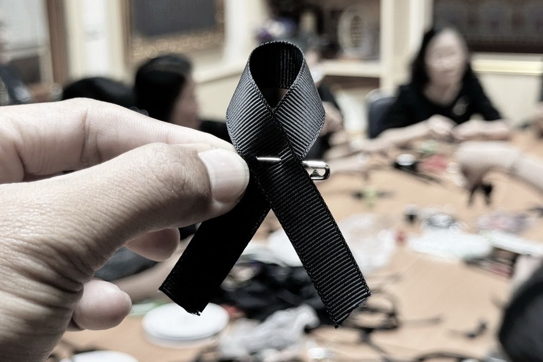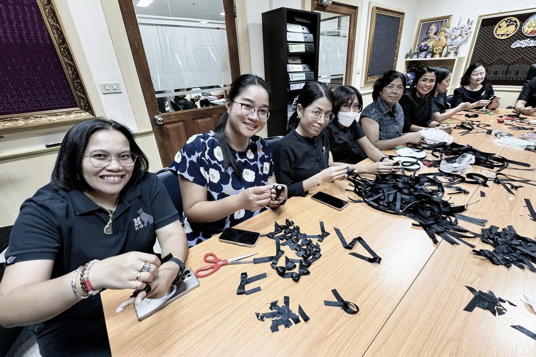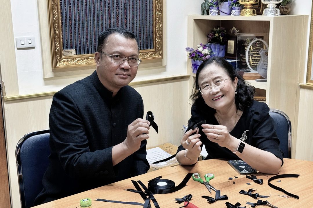 ลพบุรีพร้อมใจ! ทำริบบิ้นดำแจก ปชช. ที่จุดลงนามถวายอาลัย ‘สมเด็จพระพันปีหลวง’