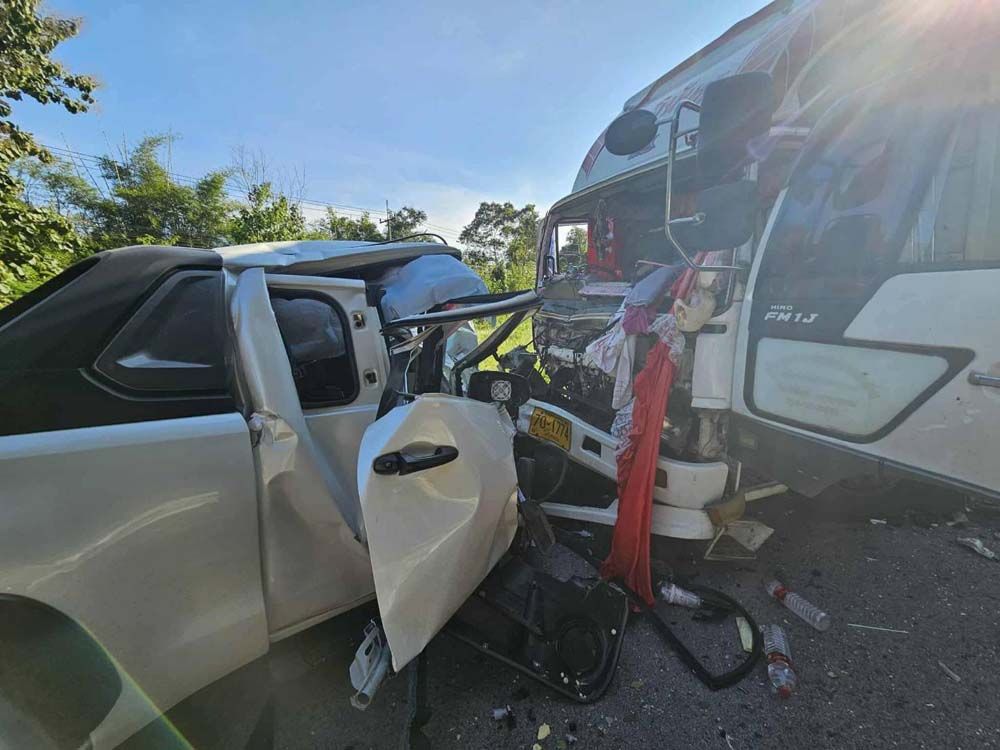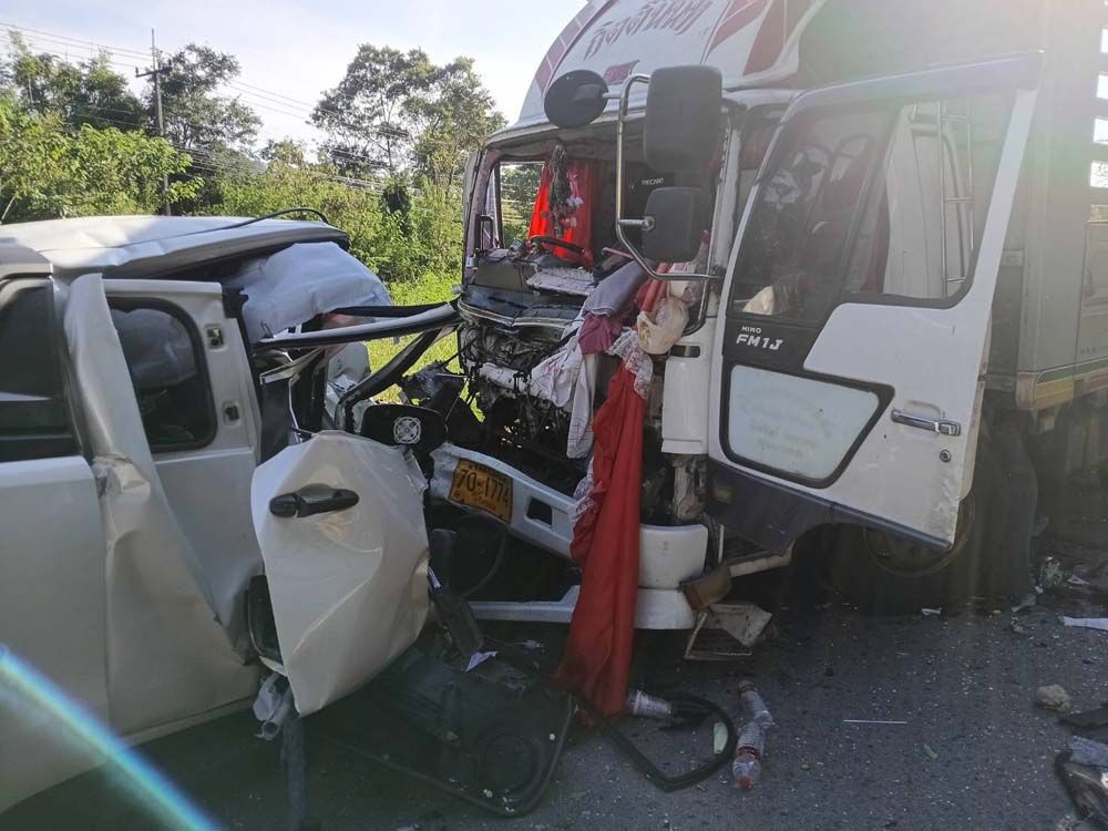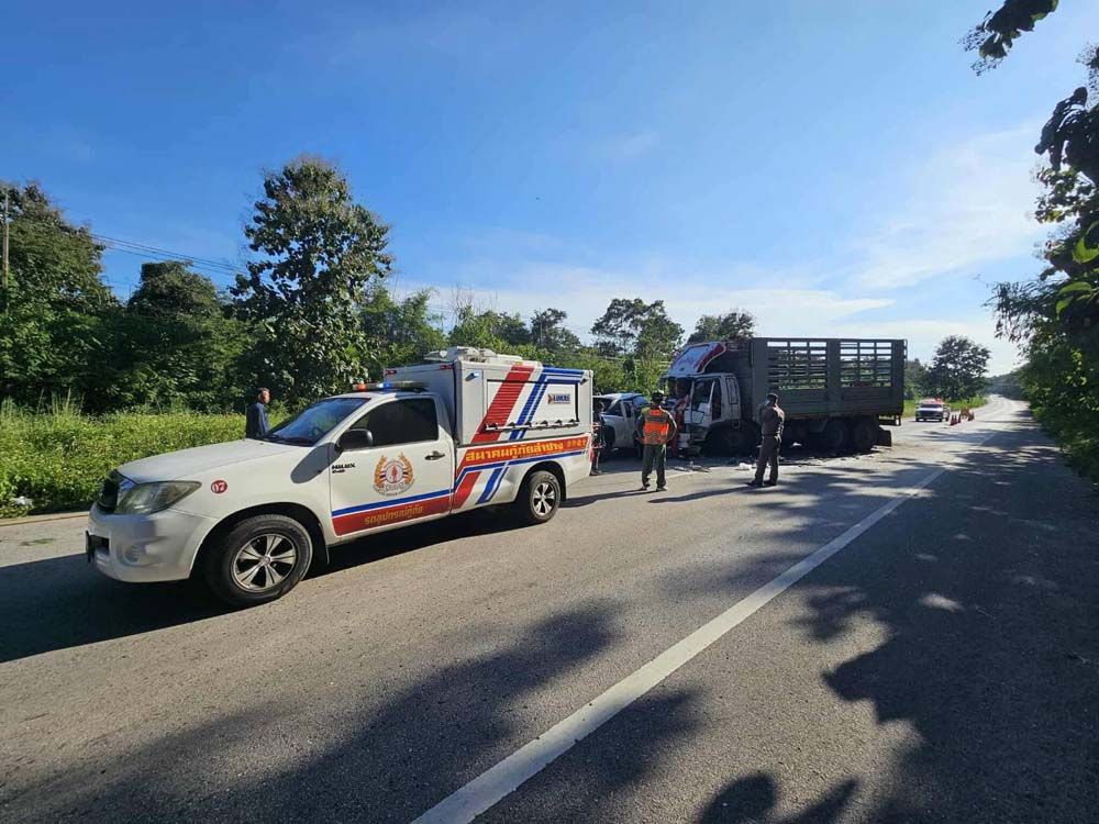 สิบล้อประสานงากระบะ รถทั้งสองคันพังยับเยิน พ.ต.ท.เสียชีวิตติดอยู่ในซากรถ กู้ภัยใช้เครื่องตัดถ่างเร่งงัดร่าง สาเหตุอยู่ระหว่างสอบสวน