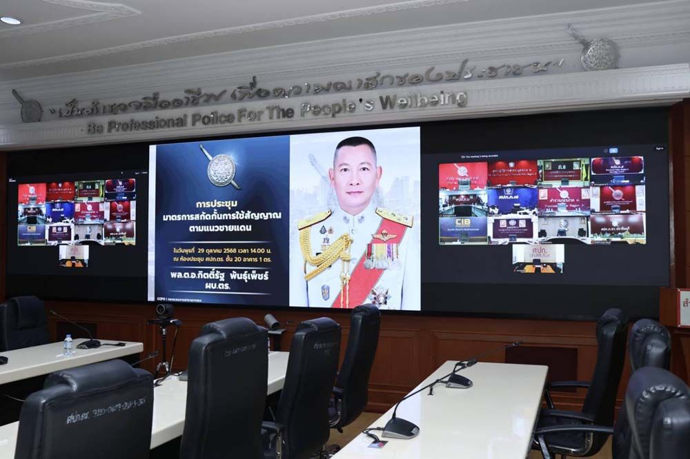 29 ตุลาคม 2568 เวลา 14.00 น. พล.ต.อ.กิตติ์รัฐ พันธุ์เพ็ชร์ ผู้บัญชาการตำรวจแห่งชาติ (ผบ.ตร.) เป็นประธานการประชุมมาตรการสกัดกั้นการใช้สัญญาณตามแนวชายแดน โดยมี พล.ต.อ.ธนา ชูวงศ์ รอง ผบ.ตร./ผู้อำนวยการศูนย์ปราบปรามอาชญากรรมทางเทคโนโลยีสารสนเทศ สำนักงานตำรวจแห่งชาติ (ผอ.ศปอส.ตร.), พล.ต.ท.จิรภพ ภูริเดช ผู้ช่วย ผบ.ตร./รอง ผอ.ศปอส.ตร. และผู้บัญชาการหน่วยต่างๆ ที่เกี่ยวข้อง ร่วมประชุม ณ ศูนย์ปฏิบัติการสำนักงานตำรวจแห่งชาติ และการประชุมระบบทางไกล