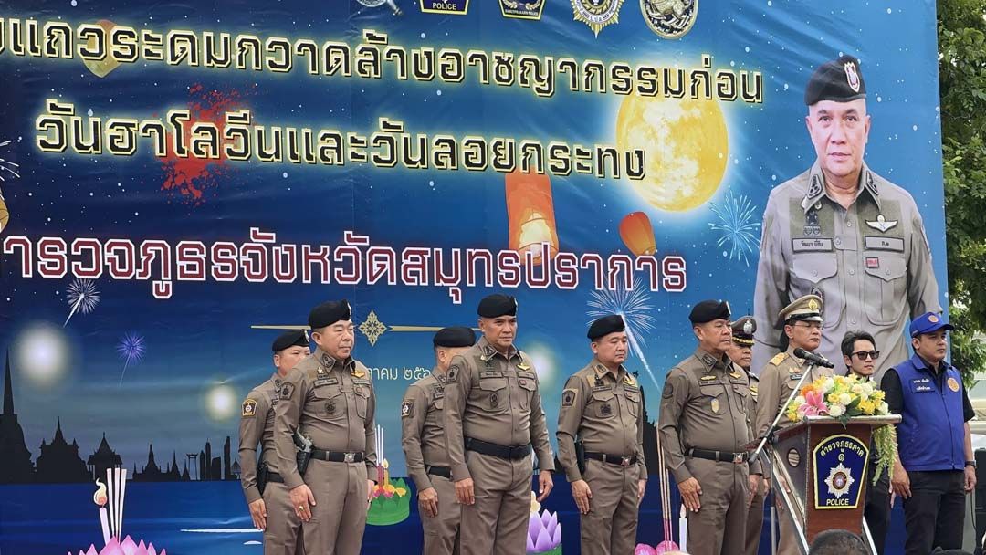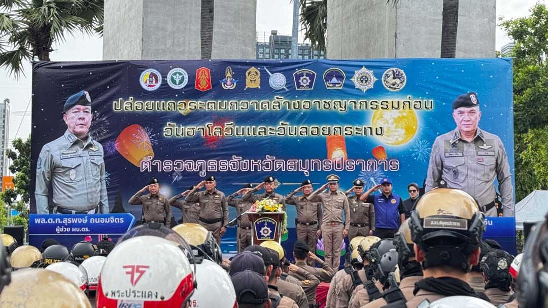 29 ตุลาคม 2568 เวลา 16.00 น. ที่ลานจอดรถ ศูนย์การค้าเมกา บางนา ต.บางแก้ว อ.บางพลี จ.สมุทรปราการ กองบังคับการตำรวจภูธรจังหวัดสมุทรปราการ (บก.ภ.จว.สมุทรปราการ) จัดพิธีปล่อยแถวระดมกวาดล้างอาชญากรรมทุกประเภทก่อนวันฮาโลวีนและวันลอยกระทง ประจำปี 2568 โดยมี พล.ต.ท.สุรพงษ์ ถนอมจิตร ผู้ช่วย ผบ.ตร. เป็นประธานในพิธี