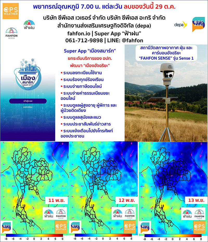 รูปนี้แสดงพยากรณ์อุณหภูมิเวลา 7.00 น. ของแต่ละวัน ลบด้วยของวันนี้ 29 ต.ค.