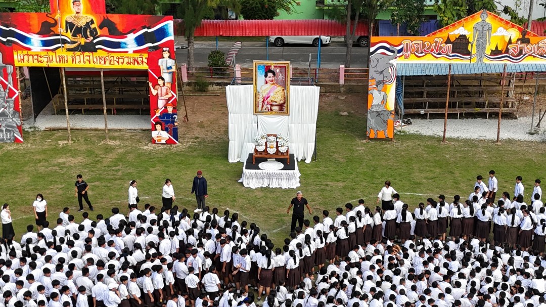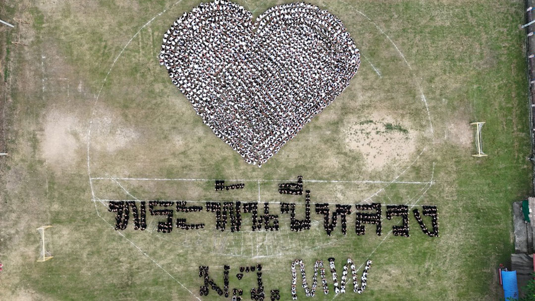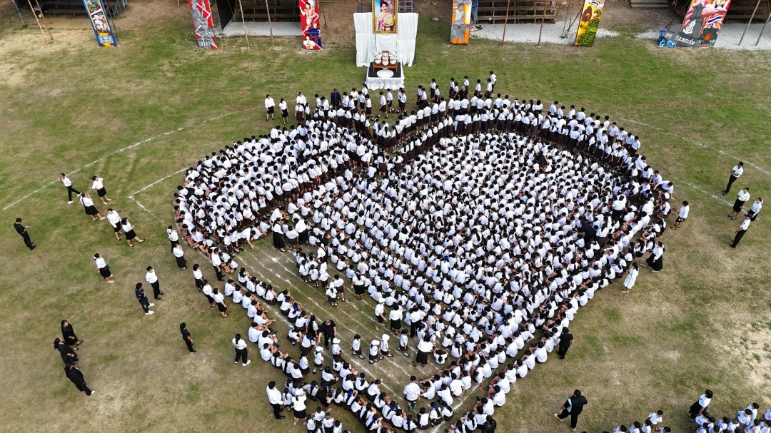 งดงามและซาบซึ้ง! รร.เมตตาวิทยา จ.เพชรบูรณ์ แปรอักษรรูปหัวใจ พร้อมข้อความ ‘พระพันปีหลวง ม.ว.’ น้อมรำลึกพระมหากรุณาธิคุณ