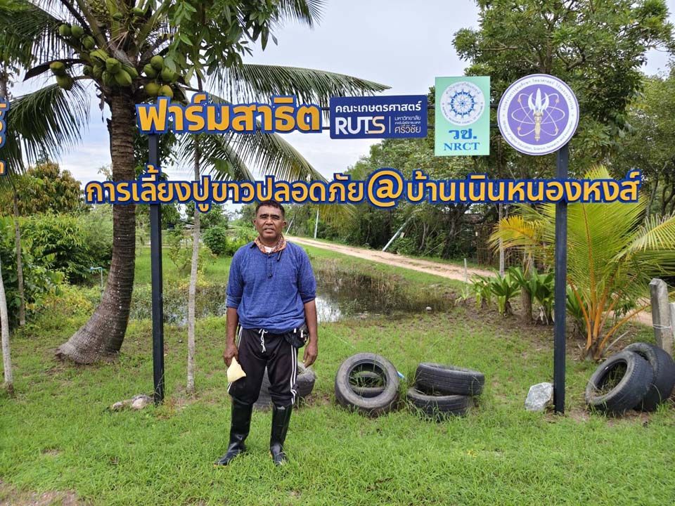 เกษตรกรที่นี่ได้รับการสนับสนุนและคำแนะนำสำนักงานประมงจังหวัดนครศรีธรรมราช และมหาวิทยาลัยเทคโนโลยีราชมงคลศรีวิชัย วิทยาเขตนครศรีธรรมราช (เกษตรไสใหญ่) สร้างขีดความสามารถเลี้ยง “ปูขาวอินทรีย์” ผลผลิตดี ในราคาที่แข่งขันได้ จากการนำปลาหมอคางดำผสมกับจุลินทรีย์เป็นอาหาร ตัวจุลินทรีย์ช่วยให้ปูกินอาหารได้มากขึ้น และมีกรดอะมิโนที่ช่วยให้ปูมีรสชาติดีขึ้น หวานอร่อยมากขึ้น และที่สำคัญจุลินทรีย์ช่วยให้ตัวปูมีกลิ่นสะอาด ตัวเกลี้ยงสะอาดกว่าปูทะเล