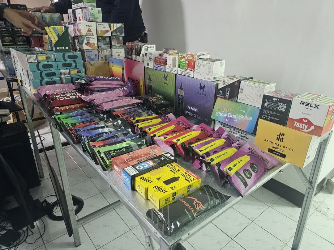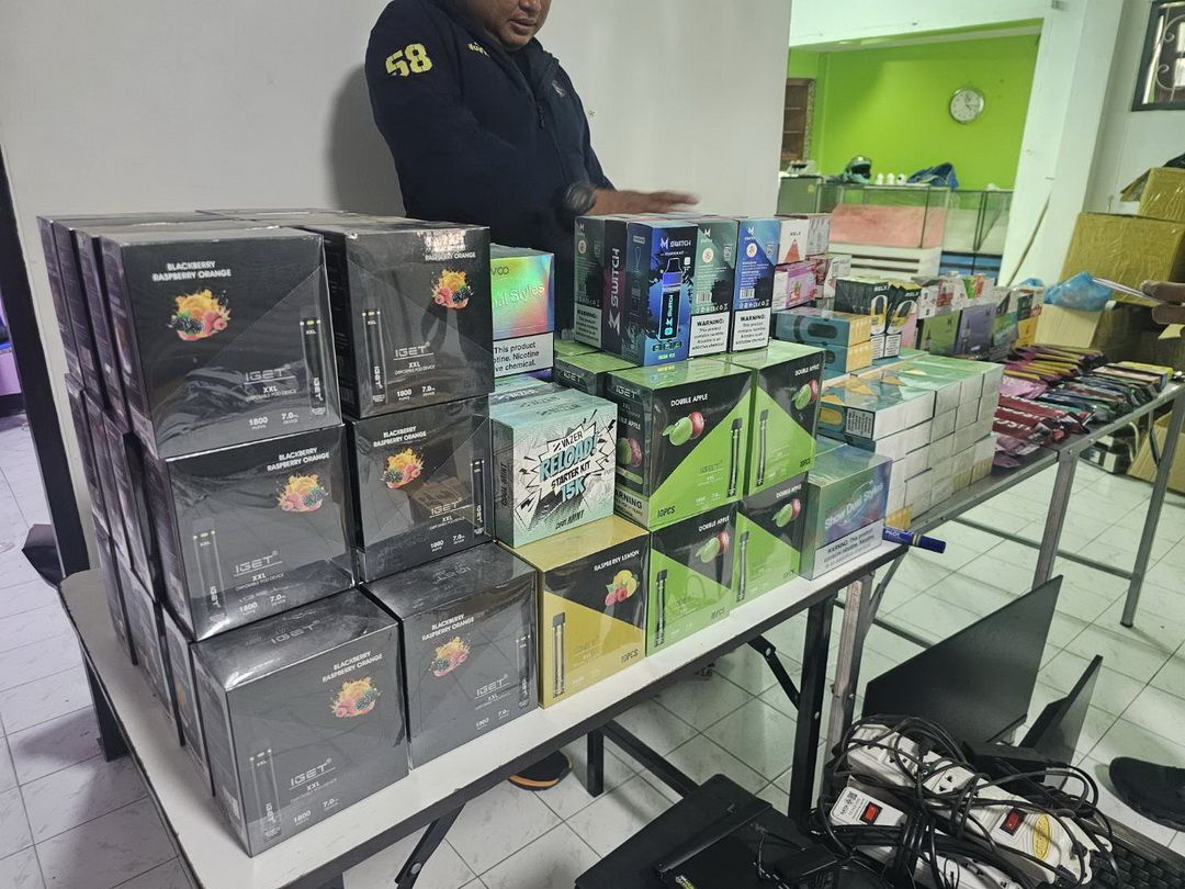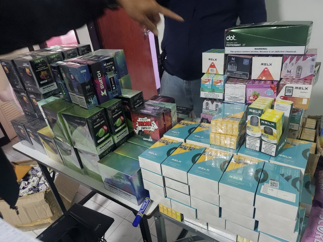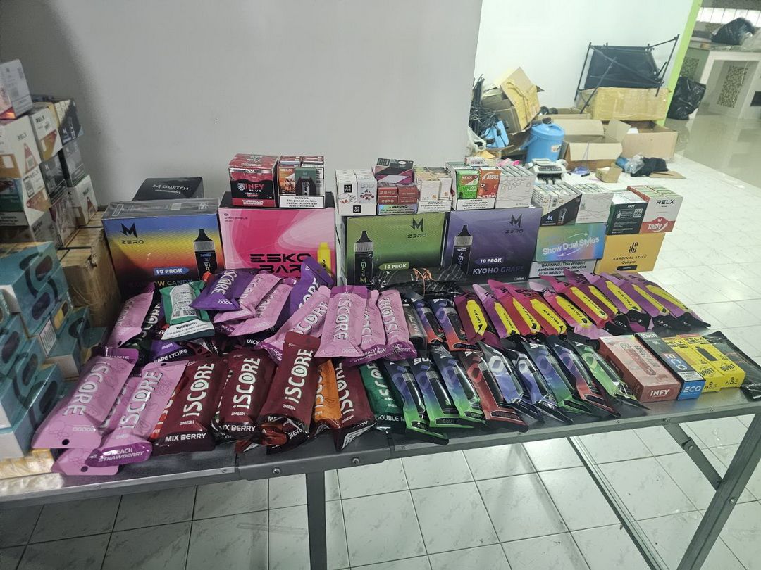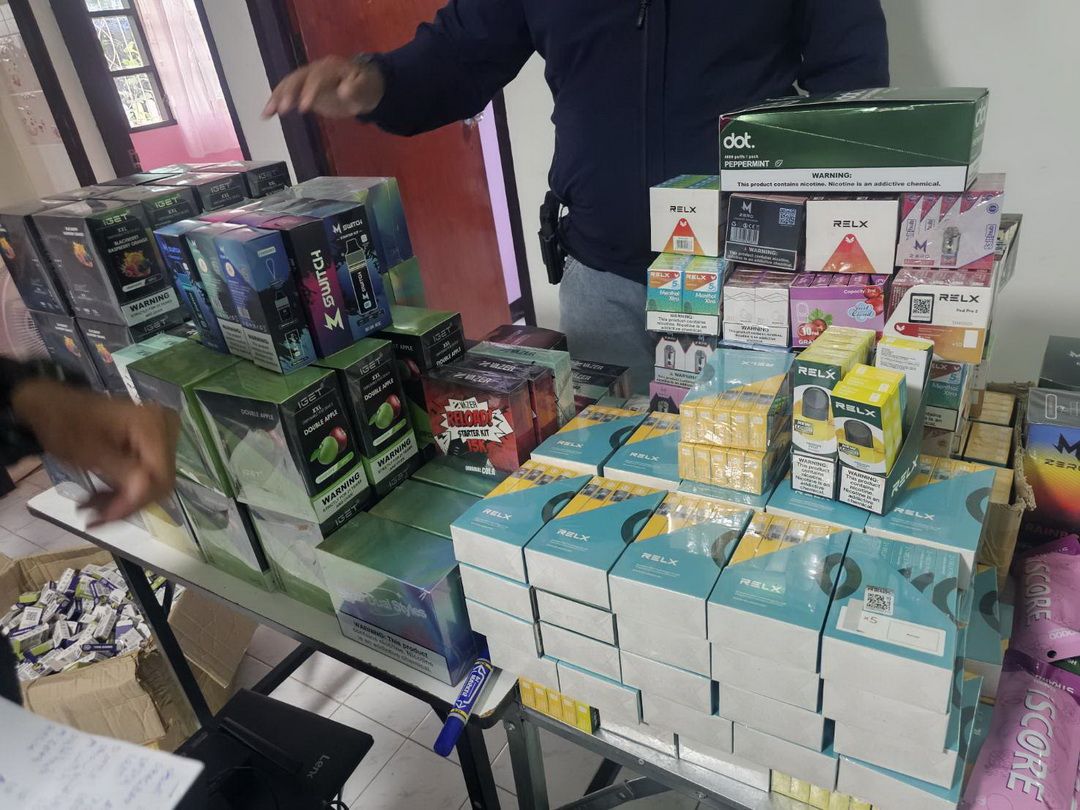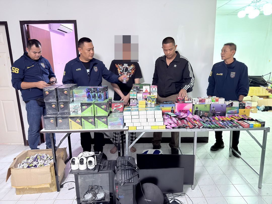 เจ้าหน้าที่จึงวางแผนให้สายลับทำการล่อซื้อ และติดตามพนักงานขนส่งจนทราบแหล่งที่มาของสินค้า โดยจากการตรวจค้นในห้องนอนบริเวณชั้น 1 ของบ้านพัก พบของกลางจำนวนมาก ประกอบด้วย หัวพอตบุหรี่ไฟฟ้า 2,126 ชิ้น , บุหรี่ไฟฟ้าชนิดสูบแล้วทิ้ง 696 ชิ้น , เครื่องบุหรี่ไฟฟ้า 2 เครื่อง และคอมพิวเตอร์ตั้งโต๊ะ 2 เครื่อง รวมของกลางบุหรี่ไฟฟ้าและอุปกรณ์ 2,824 ชิ้น