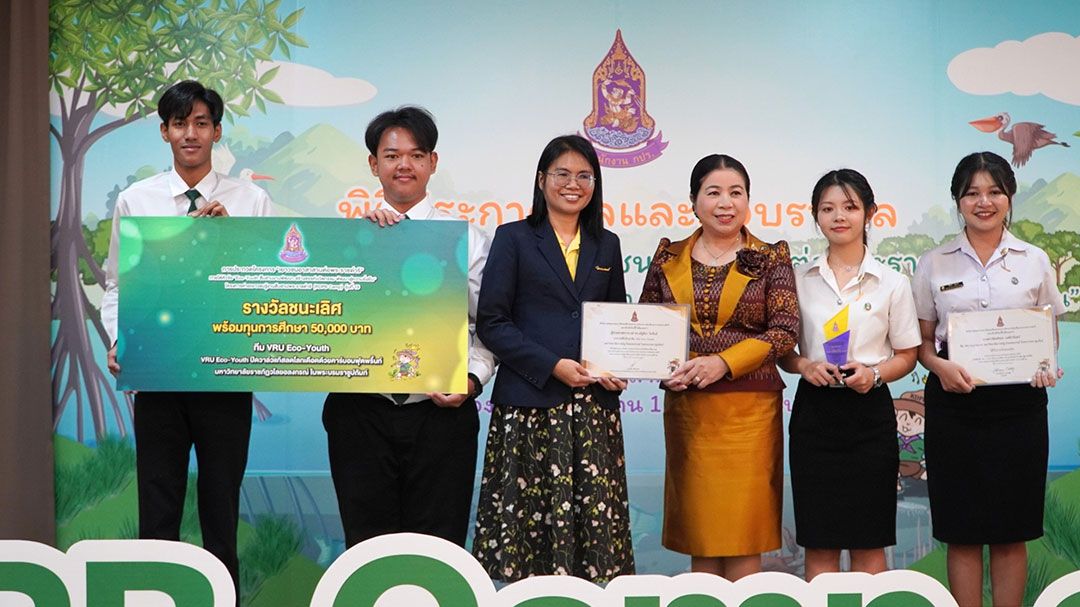 ทีม ชมรมอนุรักษ์สิ่งแวดล้อม มหาวิทยาลัยราชภัฏอุดรธานี โครงการนวัตกรรมการแปรรูปเศษเปลือกหอยเชอรี่และนำมาใช้ประโยชน์ทางการเกษตร และรางวัลเชิดชูเกียรติ มอบให้แก่อาจารย์ที่ปรึกษา ทีม VRU Eco-Youth จากมหาวิทยาลัยราชภัฏวไลยอลงกรณ์ ในพระบรมราชูปถัมภ์
