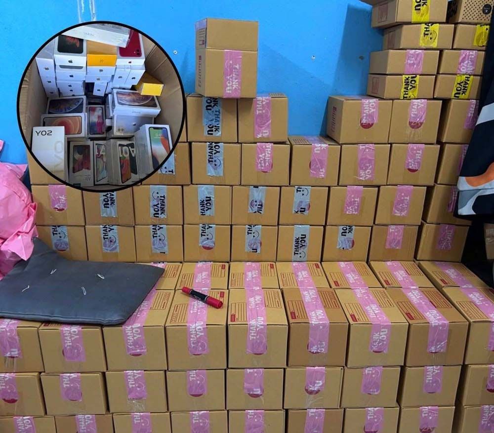 ในขณะเดียวกัน เจ้าหน้าที่ตำรวจอีกชุด ได้นำกำลังเข้าตรวจค้นโกดังแห่งหนึ่งใน จ.ขอนแก่น ซึ่งถูกใช้เป็นสถานที่บรรจุสินค้าไร้คุณภาพเพื่อส่งให้เหยื่อ โดยสามารถตรวจยึดของกลางที่เกี่ยวข้องกับการกระทำความผิด ดังนี้