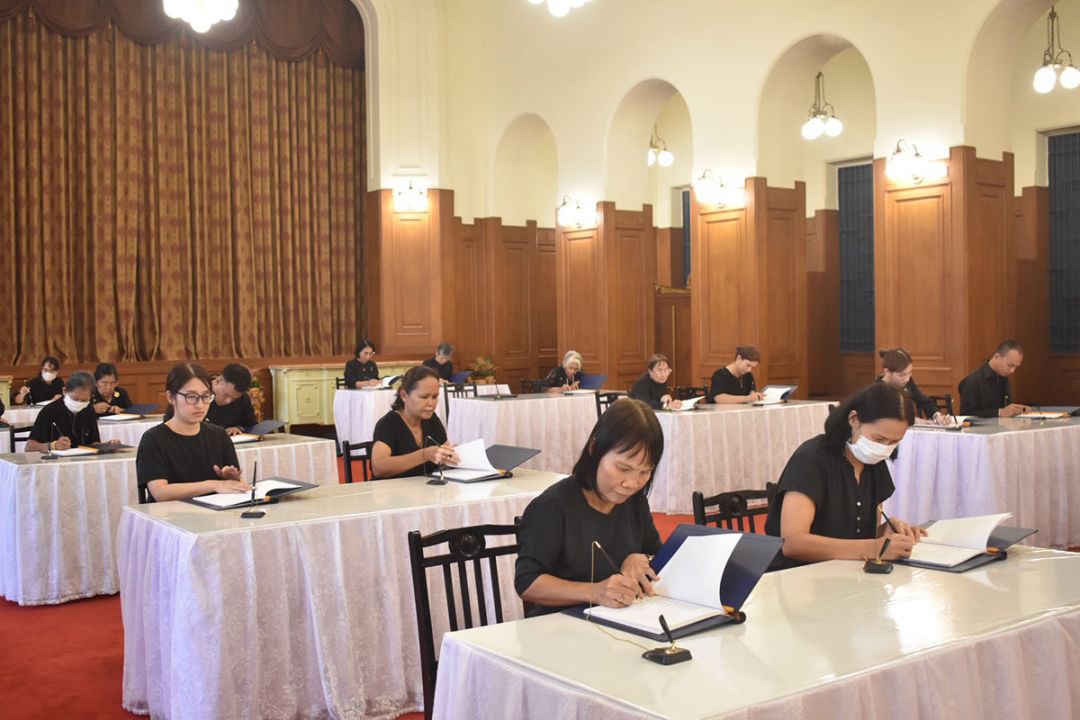 อาทิ ดร.ลาลีวรรณ กาญจนจารี ประธานสภาสมาคมสตรีแห่งชาติ ในพระบรมราชินูปถัมภ์ พร้อมคณะฯ, ดร.คุณหญิญกัลยา โสภณพาณิชย์ ประธรรนพรรคไทยก้าวใหม่ และคณะ เข้าถวายสักการะพร้อมลงนามถวายความอาลัยเบื้องหน้าพระฉายาลักษณ์ พระบรมศพ