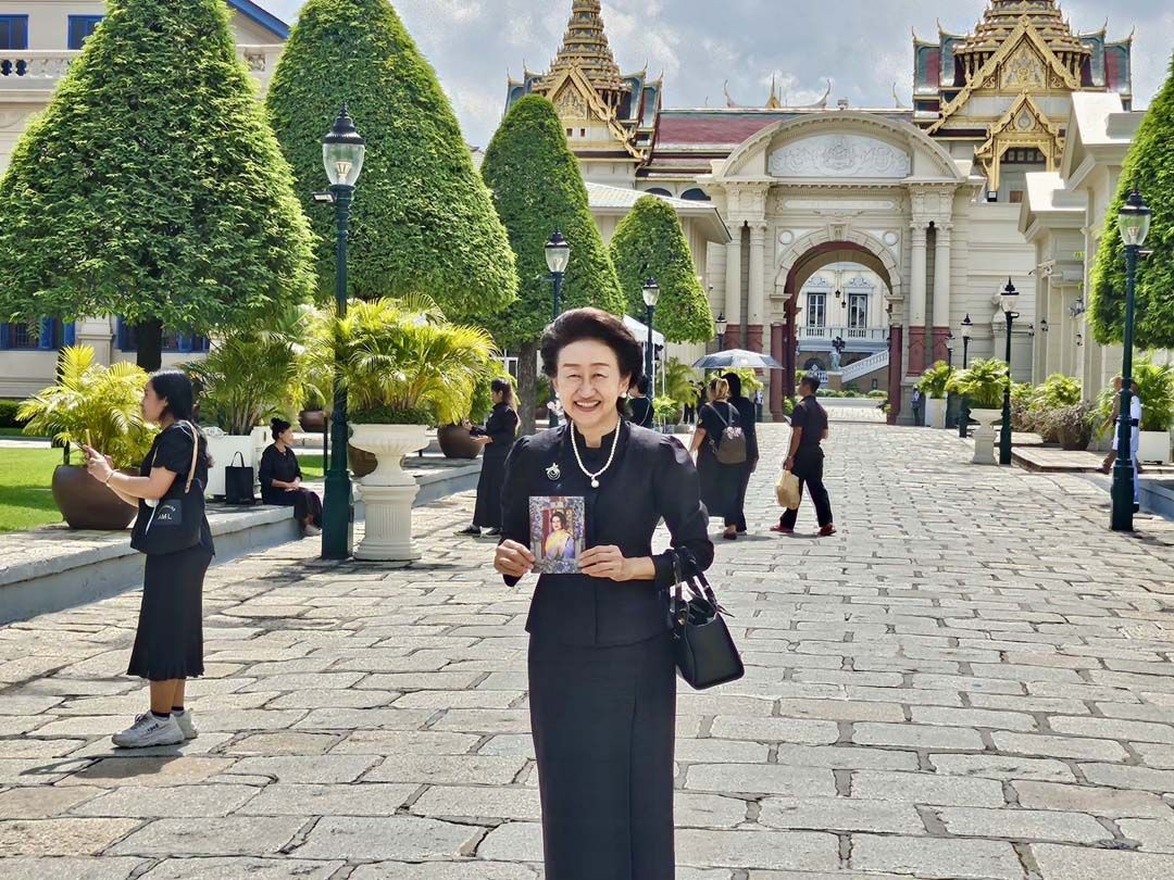 “เมื่อถึงกำหนดวันคล้ายวันเฉลิมพระชนมพรรษา สมเด็จพระพันปีหลวง คนไทยในต่างแดนพร้อมใจกันจัดงานเฉลิมพระเกียรติชุดการแสดงรำถวายพระพร ณ สถานกงศุลใหญ่ ณ เมืองคุนหมิง และสถานทูตไทยในโอซาก้า โดยดิฉันเป็นครูฝึกสอนเด็กไทยและต่างชาติรำไทยด้วยความสวยสดงดงาม เป็นความภาคภูมิใจที่ได้แสดงความจงรักภักดีแด่พระองค์ท่าน และในวันนี้ ที่เดินทางมากราบสักการะและถวายความอาลัยเบื้องหน้าพระฉายาลักษณ์สมเด็จพระพันปีหลวง และได้รับพระฉายาลักษณ์เป็นที่ระลึกจะนำไปสักการะบูชา ระลึกถึงพระมหากรุณาธิคุณเป็นเครื่องยึดเหนี่ยวจิตใจให้เราทำความดีต่อไปอย่างไม่สิ้นสุด”