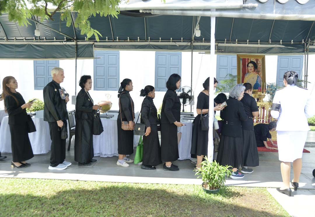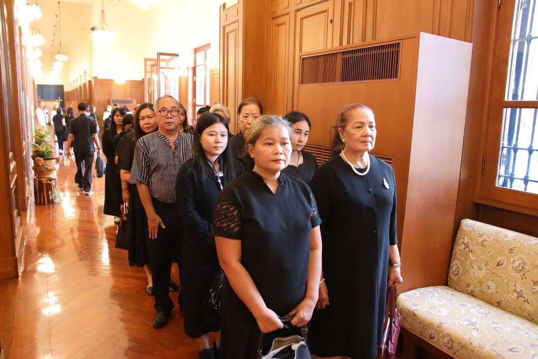 เมื่อวันที่ 2 พฤศจิกายน 2568 ที่ศาลาสหทัยสมาคมฯ และเต็นท์สนามหญ้าข้างอาคารลูกขุนใน พระบรมมหาราชวัง ตลอดทั้งวัน ได้มี สมาชิกราชสกุล พสกนิกรทุกหมู่เหล่าจากทั่วสารทิศทั้งชาวไทยและชาวต่างชาติจำนวนมาก่างแต่งกายไว้ทุกข์เดินทางมาถวายสักการะพระบรมศพ พร้อมลงนามถวายความอาลัยในสมุดหลวง เบื้องหน้าพระฉายาลักษณ์ สมเด็จพระนางเจ้าสิริกิติ์ พระบรมราชินีนาถ พระบรมราชชนนีพันปีหลวง อย่างต่อเนื่องด้วยความอาลัยและซาบซึ้งในพระมหากรุณาธิคุณ
