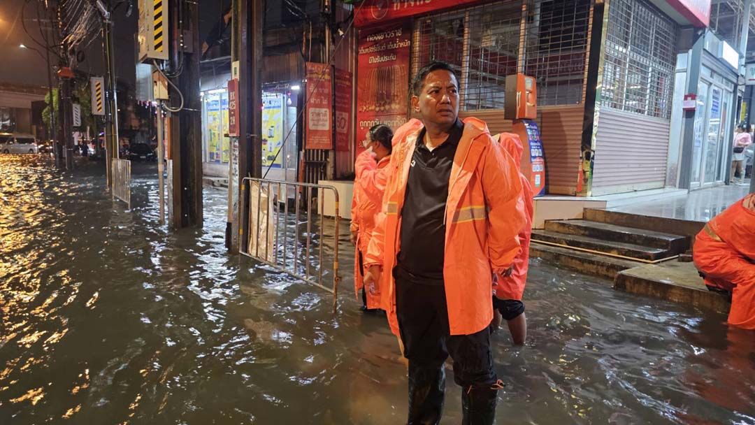 3 พฤศจิกายน เวลาประมาณ 20.00 น. นายธราพงษ์ เพชรคง ผู้อำนวยการเขตลาดกระบัง พร้อมด้วยนายบุญยืน คุณเจริญ ผู้ช่วยผู้อำนวยการเขต นางอามีนะ สิงสาหัส หัวหน้าฝ่ายรักษาความสะอาด ลงพื้นที่ติดตามสถานการณ์น้ำท่วมขังบริเวณ แยกกิ่งแก้ว หลังจากมีฝนตกหนักในพื้นที่เขตลาดกระบัง ซึ่งมีน้ำท่วมขังสูงประมาณ 20–25 เซนติเมตร ส่งผลให้พื้นที่ตั้งแต่แยกกิ่งแก้วจนถึงซอยลาดกระบัง 22 มีน้ำท่วมขังหลายจุด โดยเฉพาะบริเวณ จุดติดตั้งเครื่องสูบน้ำคลองบัวลอย