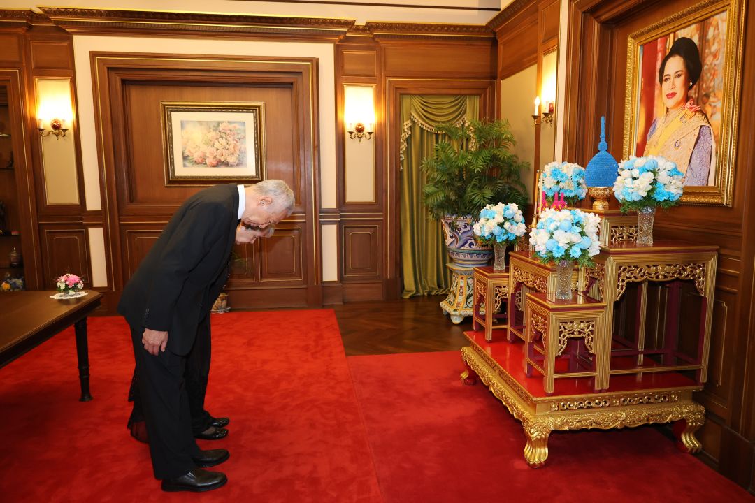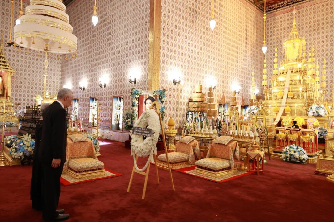อดีตนายกฯสิงคโปร์ วางพวงมาลา ถวายสักการะ ‘สมเด็จพระพันปีหลวง‘