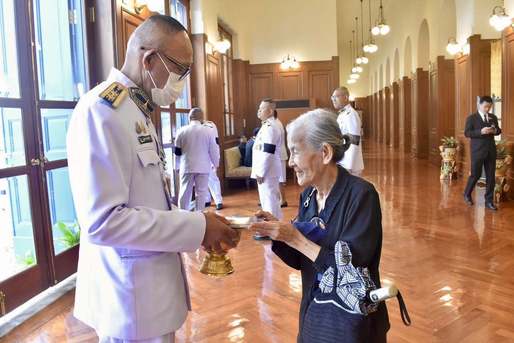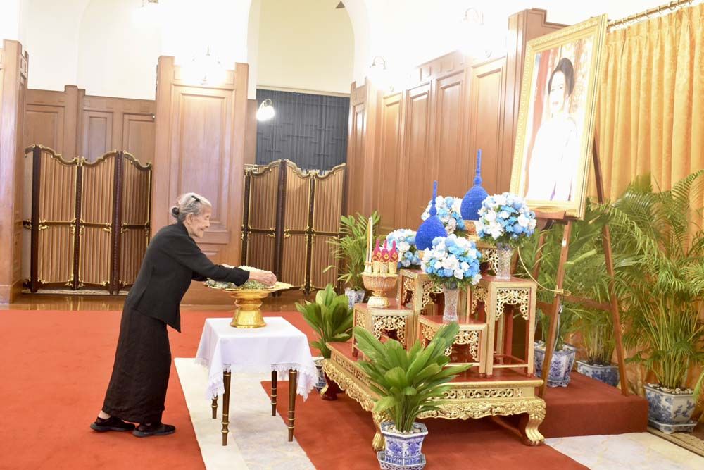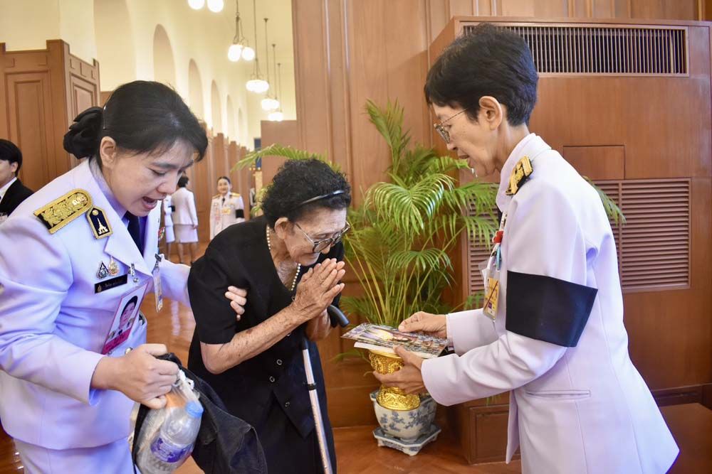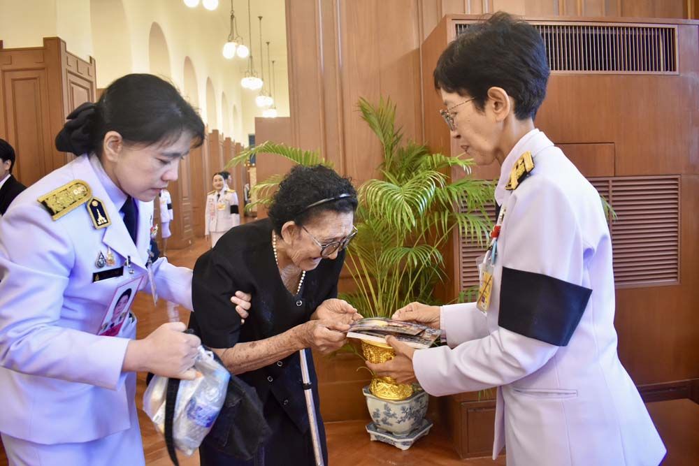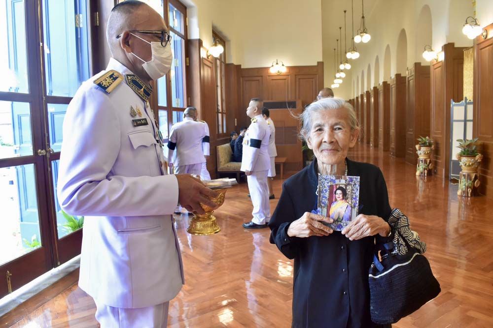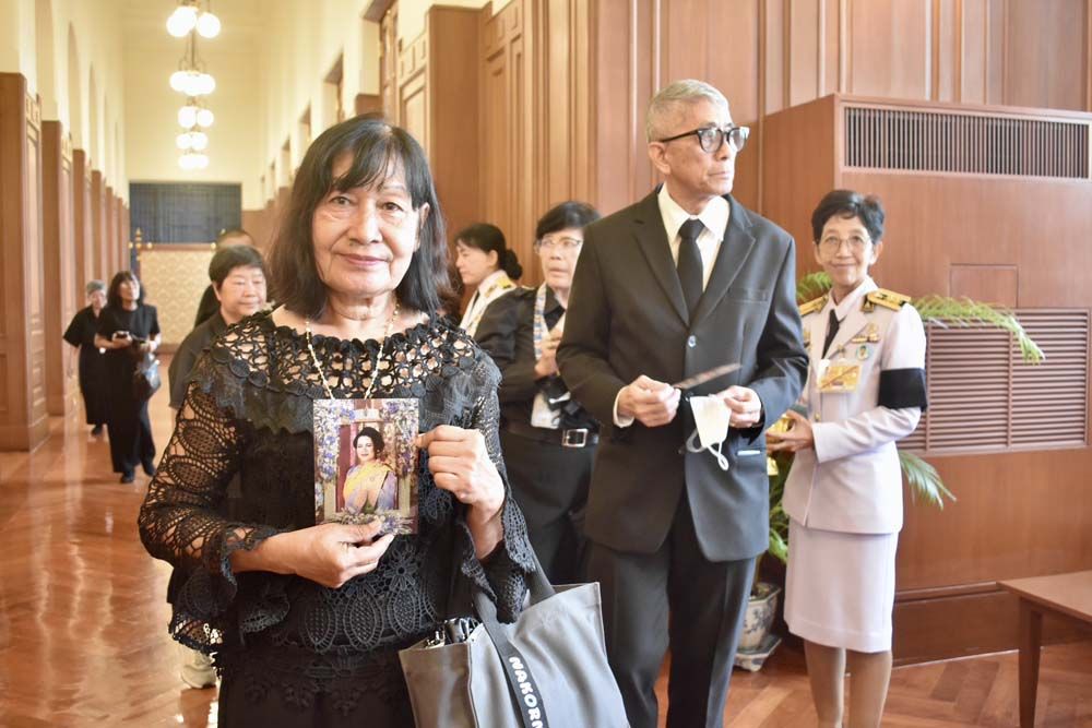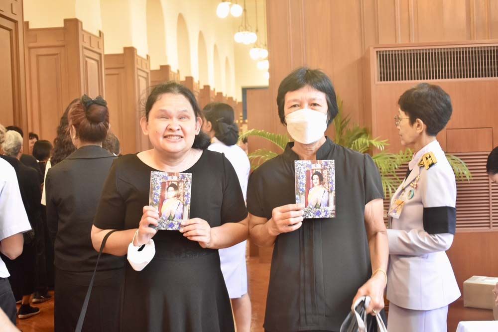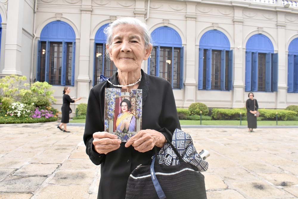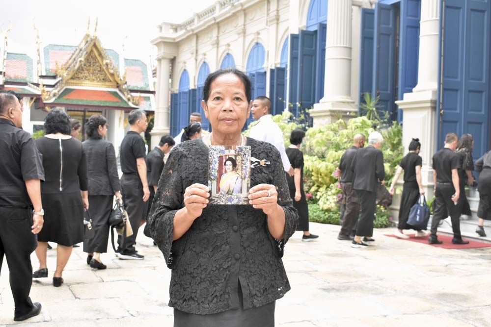 ด้านนางมานิดา ภู่เจริญ อายุ 86 ปี ข้าราชการครูบำนาญ กล่าวว่า ตนเดินทางมาตั้งแต่วันแรกที่มีขบวนเชิญพระบรมศพ “สมเด็จพระพันปีหลวง” จากโรงพยาบาลจุฬาฯมายังพระบรมมหาราชวัง และทุกวันนี้ตนจะนำดอกไม้ พวงมาลัย เดินทางมาถวายสักการะพระบรมฉายาลักษ์ ในหลวง ร.9 ที่หน้าพระบรมมหาราชวัง และสักการะพระบรมศพสมเด็จพระพันปีหลวง ที่ศาลาสหทัยสมาคมฯ และไปที่ รพ.จุฬาฯทุกวัน เนื่องจากตนมีความซาบซึ่งในสถาบันพระมหากษัตริย์พระราชวงศ์จักกรีทุกพระองค์ และยึดมั่นในสถาบันศาสนา สมเด็จพระพันปีหลวง ท่านทรงมีพระเมตตามาก ปกติตนจะมารับเสด็จเวลาท่านเสด็จฯวัดพระแก้วและวัดบวรฯบ่อยครั้ง เพื่อมาชื่นชมพระบารมีมาถวายความจงรักภักดีในฐานะพสกนิกร และตั้งใจจะมาทุกวันจนกว่าจะมีพิธีพระราชทานเพลิงศพ