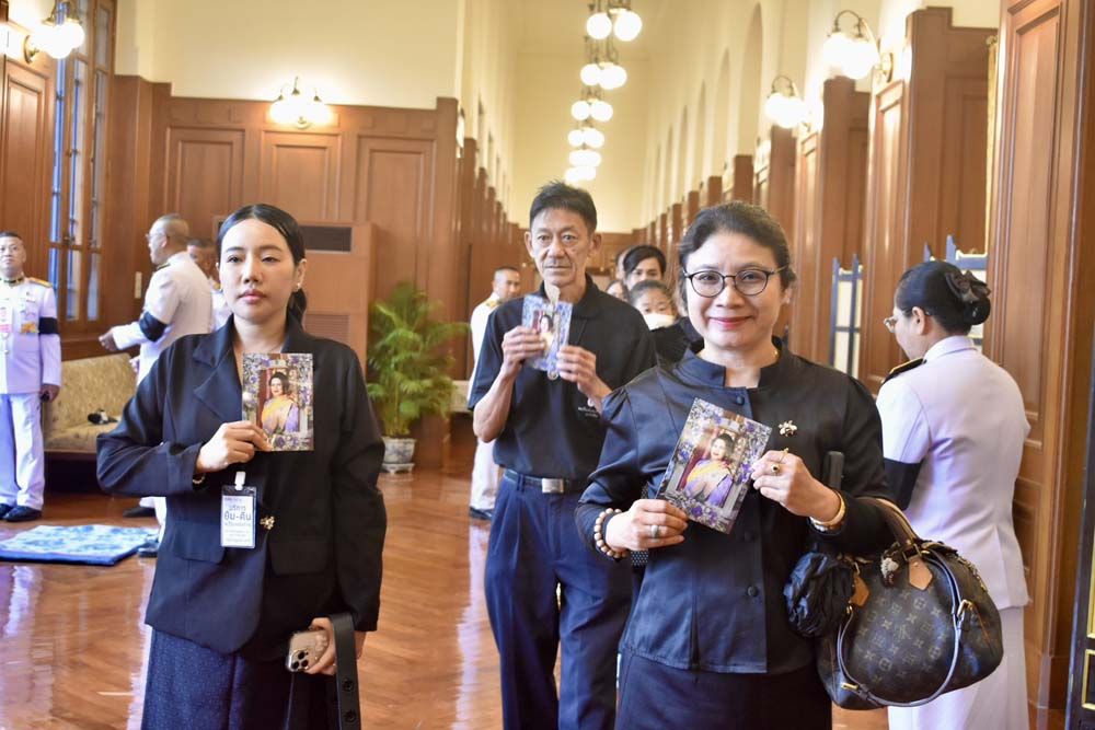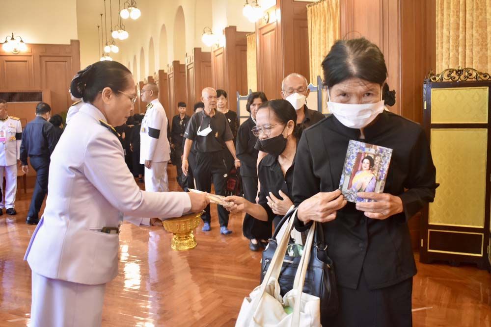 วันที่ 4 พฤศจิกายน 2568 ณ ศาลาสหทัยสมาคมฯ และเต็นท์สนามหญ้าข้างอาคารลูกขุนใน พระบรมมหาราชวัง คณะบุคคล และประชาชนทั้งในกรุงเทพฯและจังหวัดต่างๆแต่งกายด้วยชุดสีดำไว้ทุกข์ ทยอยเดินทางมาเข้าถวายสักการะพระบรมศพ พร้อมลงนามถวายความอาลัยในสมุดหลวง เบื้องหน้าพระฉายาลักษณ์ สมเด็จพระนางเจ้าสิริกิติ์ พระบรมราชินีนาถ พระบรมราชชนนีพันปีหลวง อย่างต่อเนื่องด้วยความอาลัยและสำนึกในพระมหากรุณาธิคุณที่ทรงปฏิบัติพระราชกรณียกิจต่างๆเพื่อความอยู่ดีมีสุขของพสกนิกรชาวไทยตลอดมา ตั้งแต่เวลา เวลา 08.30 น.-16.00 น. ถึงแม่ฝนจะตกหนักเป็นระยะๆทุกคนก็ไม่ย่อท้อได้เตรียมร่มกันฝนมาเพื่อให้ได้เข้ากราบสักการะ โดยที่เต้นท์พักคอยหน้าศาลาสหทัยสมาคมฯ เจ้าหน้าที่ได้เปิดวีดิทัศน์สารคดีเฉลิมพระเกียรติที่ “สมเด็จพระพันปีหลวง“ เสด็จฯทรงงานยังสถานที่ต่างๆให้ได้ชม เพื่อน้องรำลึกถึงพระมหากรุณาธิคุณ