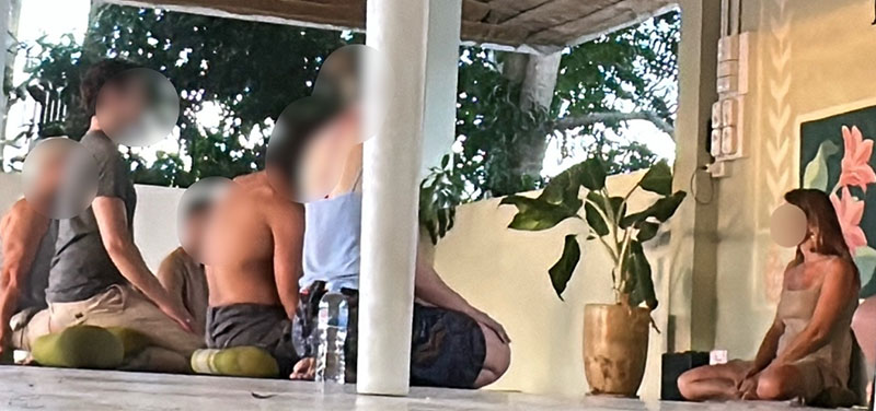 การเข้าจับกุมครั้งนี้สืบเนื่องจากเจ้าหน้าที่ตำรวจท่องเที่ยวเกาะพะงันได้รับแจ้งจากสายลับ ว่ามีกิจกรรมโยคะของชาวต่างชาติสุ่มเสี่ยงต่อการอนาจารทางเพศ พร้อมหลักฐานเป็นภาพถ่ายหน้าจอเฟซบุ๊ก ซึ่งมีการเผยแพร่ทางโซเชียลมีเดียด้วยในวันอังคาร เวลา 16:30 – 18:00 น.