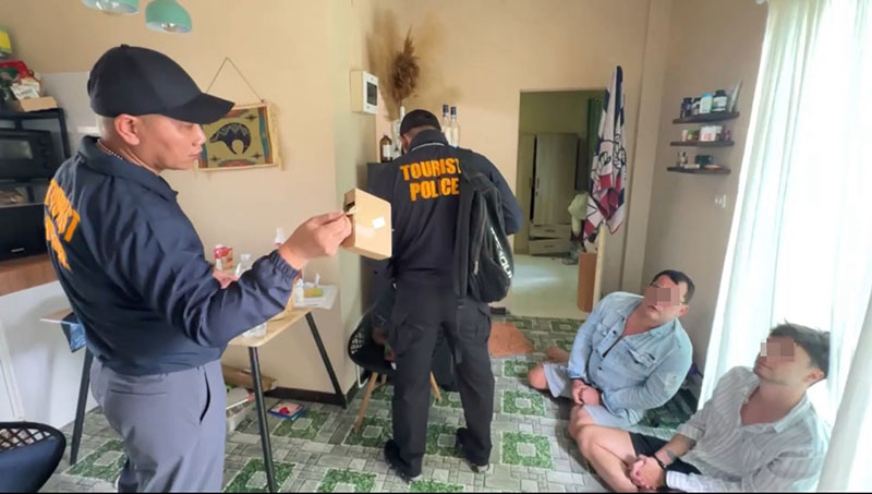 5 พฤศจิกายน 2568 พ.ต.ท. วินิจ บุญชิต สารวัตรสถานีตำรวจท่องเที่ยว 5 กองกำกับการ 2 กองบังคับการตำรวจท่องเที่ยว 3 (สว.ส.ทท.5 กก.2 บก.ทท.3) พร้อมชุดสืบสวนตำรวจท่องเที่ยวเกาะพะงัน ได้รับแจ้งจากพลเมืองดีว่ามีชาวต่างชาติในบ้านเช่าดังกล่าวมีพฤติกรรมน่าสงสัยส่งเสียงดังและเดินเข้าออกอย่างผิดปกติ ที่บ้านเช่าไม่มีเลขที่ ม.1 ต.เกาะพะงัน อ.เกาะพะงัน จ.สุราษฎร์ธานี