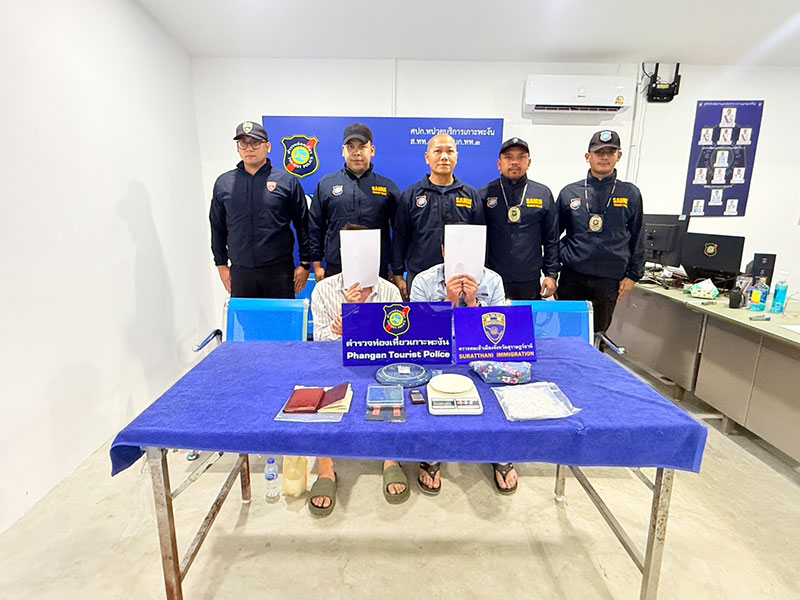 โดยผู้ต้องหาทั้งสองยอมรับว่าซื้อยาเสพติดมาจากชายไทยไม่ทราบชื่อ ใกล้กับโรงแรมแห่งหนึ่ง เพื่อนำมาเสพ เจ้าหน้าที่ตำรวจชุดจับกุมได้นำตัวผู้ต้องหาทั้งสองคน พร้อมของกลาง ส่งมอบให้พนักงานสอบสวน สภ.เกาะพะงัน เพื่อดำเนินคดีตามกฎหมายต่อไป และจะขยายผลไปยังแหล่งที่มาของยาเสพติดดังกล่าวต่อไป