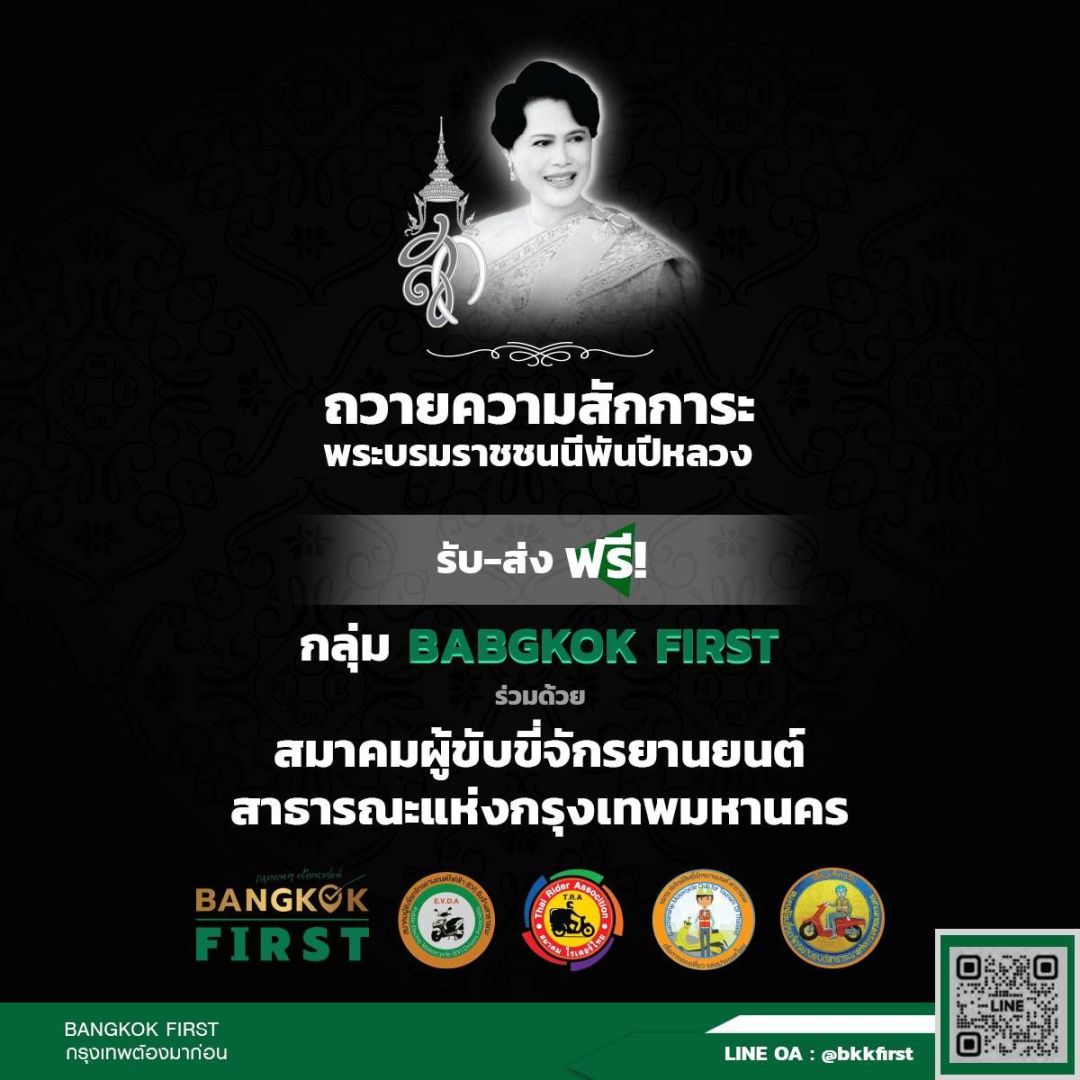 กลุ่มแบงคอกเฟิร์ส ร่วมกับ สมาคมวินจักรยานยนต์ ขอเป็นส่วนหนึ่งในการอำนวยความสะดวกแก่พี่น้องประชาชน ที่ตั้งใจเดินทางไปถวายสักการะ พระบรมราชชนนีพันปีหลวง ณ พระบรมมหาราชวังและท้องสนามหลวง เนื่องในโอกาสสำคัญที่สำนักพระราชวังเปิดให้ประชาชนเข้าถวายบังคมพระบรมศพ พระบรมราชชนนีพันปีหลวง