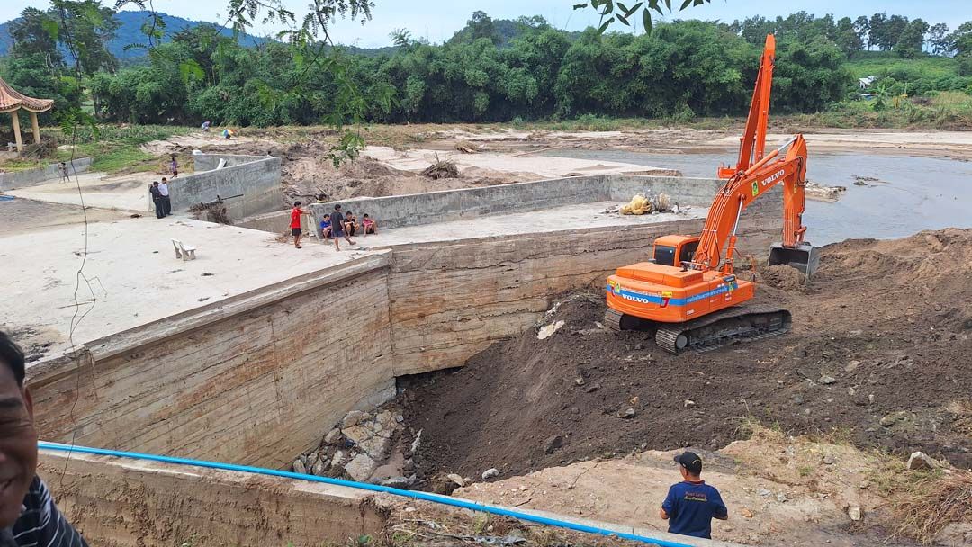 เบื้องต้นสำนักงานป้องกันและบรรเทาสาธารณภัย (ปภ.) จังหวัดอุทัยธานี ได้ประสานไปยังศูนย์ป้องกันบรรเทาสาธารณ์ภัย เขต 16 ชัยนาท พร้อมรถแบคโฮ 2 คัน และของ อบต.สุขฤทัย อบต.ห้วยคต รวมจำนวน 4 คัน มาช่วยกันขนย้ายดินเข้าถมช่องทางที่น้ำป่าซัดพัง โดยถมดินให้เต็มก่อน เพื่อให้พี่น้องชาวกะเหรี่ยงใช้รถเล็กข้ามออกมาก่อน และได้โกยหน้าฝายให้น้ำไหลสะดวก หลังจากนั้นจะส่งเจ้าหน้าที่ไปตรวจสอบตัวฝายกั้นน้ำที่มีรอยร้าวอยู่ เพื่อดำเนินการขั้นต่อไป
