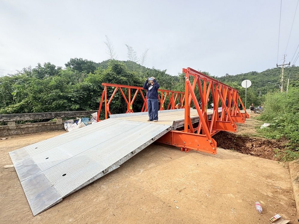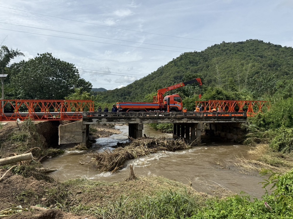โดยเมื่อวันที่ 6 พ.ย.68 เจ้าหน้าที่ศูนย์ป้องกันและบรรเทาสาธารณภัย เขต 2 สุพรรณบุรี ได้นำเครื่องจักรขนาดใหญ่เข้ามาติดตั้งสะพานแบริ่งเพื่อบรรเทาความเดือดร้อนให้กับประชาชนในพื้นที่เป็นการชั่วคราว โดยมีเจ้าหน้าที่เทศบาลตำบลเขาโจด เจ้าหน้าที่อุทยานแห่งชาติเขื่อนศรีนครินทร์ และชาวบ้านในพื้นที่ร่วมด้วยช่วยกันประกอบสะพาน จนกระทั่งเวลาประมาณ 14.00 น วันที่ 7 พ.ย.68 จึงสามารถประกอบสะพานแบริ่งให้ชาวบ้านใช้สัญจรไปมาได้อย่างสมบูรณ์แบบ แต่จำกัดด้วยการห้ามนำรถบรรทุกตั้งแต่ 6 ล้อขึ้นไปข้ามสะพานโดยเด็ดขาด เพราะสะพานแบริ่งสามารถรับน้ำหนักไม่เกิน 10 ตัน
