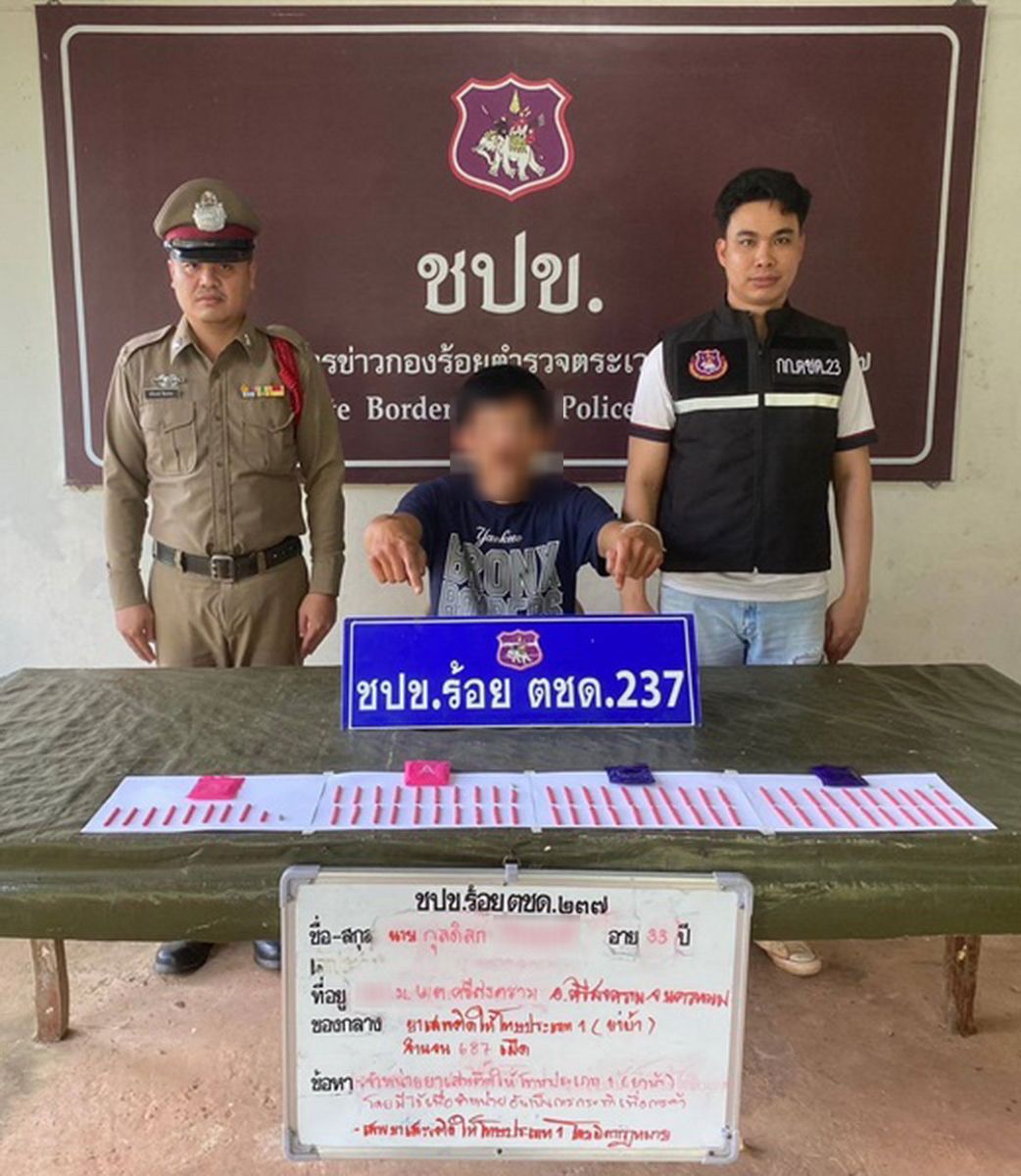 ผู้สื่อข่าวรายงานว่า เจ้าหน้าที่ตำรวจตระเวนชายแดนที่ 237 (ตชด.237) โดยการนำของ พ.ต.ท.เรวัฒ จำปาน ผบ.ร้อย ตชด.237 และ ร.ต.อ.จรณ์ แก้วคำแสน หัวหน้าชุดปฏิบัติการข่าว (หน.ชปข.ร้อย ตชด.237) ได้ร่วมกันจับกุมผู้ต้องหา 1 ราย คือ นายกุลดิลก หรือ ‘บิ๊ก’ อายุ 33 ปี ชาวบ้านปากอูน หมู่ 6 อ.ศรีสงคราม พร้อมตรวจยึดของกลาง ยาบ้าจำนวน 687 เม็ด