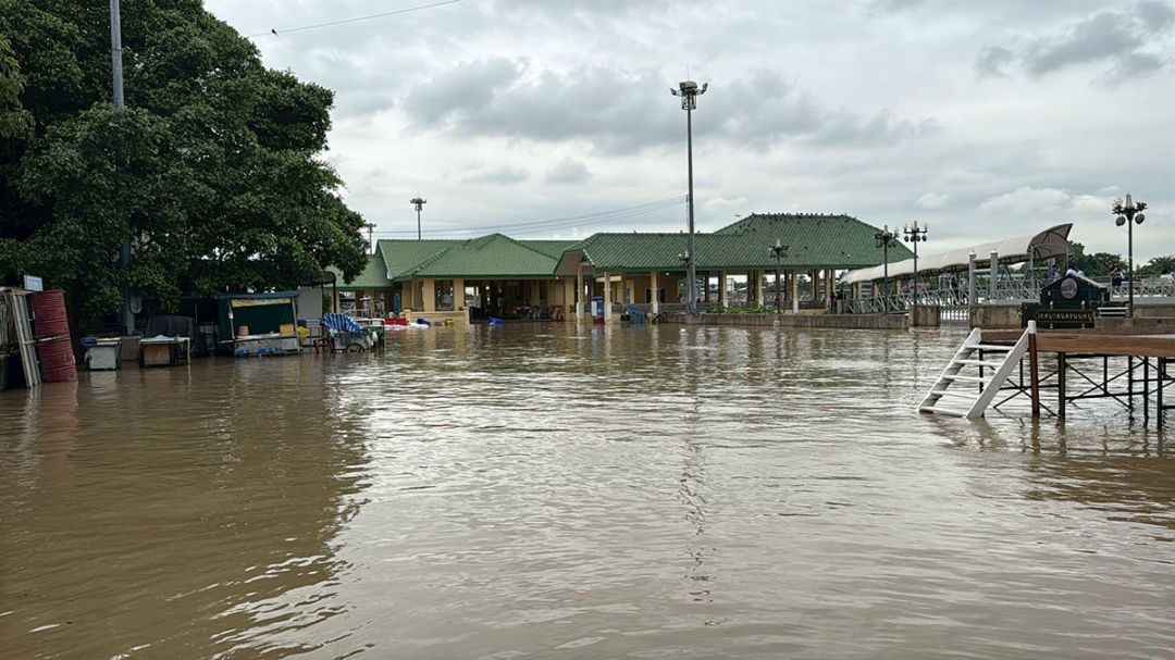 8 พฤศจิกายน 2568 เวลา 09.00 น. ที่ท่าน้ำนนทบุรี ต.สวนใหญ่ อ.เมืองนนทบุรี หลังจากเขื่อนเจ้าพระยาเพิ่มการระบายน้ำทำให้จังหวัดนนทบุรี มีปริมาณน้ำขึ้นสูงและประกอบกับมีน้ำทะเลหนุน ทำให้บริเวณลานของเขื่อนตลอดแนวมีน้ำท่วม