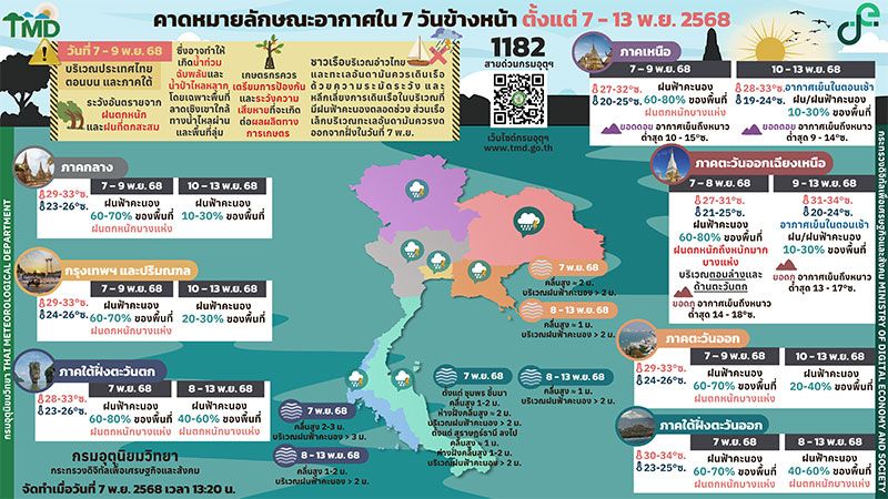 คาดหมายอากาศรายภาค วันที่ 8 – 14 พฤศจิกายน พ.ศ. 2568