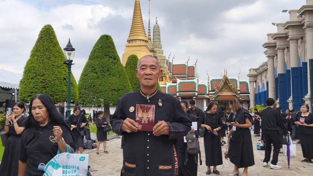 ส่วน น.ส.นราพร ภูงามเขียน อายุ 60 ข้าราชการเกษียณ จาก จ.กาฬสินธุ์ กล่าวว่า ตั้งใจมาถวายสักการะพระบรมศพ เบื้องหน้าพระฉายาลักษณ์ สมเด็จพระนางเจ้าสิริกิติ์ พระบรมราชินีนาถ พระบรมราชชนนีพันปีหลวง เป็นโอกาสครั้งหนึ่งที่เราจะได้มาส่งเสด็จท่าน พรุ่งนี้ตนก็จะมากราบพระบรมศพพระพันปีหลวงบนพระที่นั่งดุสิตมหาปราสาท อีกครั้ง สำหรับพระราชกรณียกิจของพระองค์ท่านที่ตนประทับใจคือทรงส่งเสรืมภูมิปัญญาชาวบ้านจังหวัดกาฬสินธุ์ อย่างผ้าไหมแพรวา มาต่อยอดกลายเป็นมรดกโลก