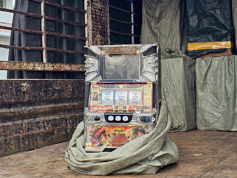 จากการตรวจสอบ พบนาย MR.KUNJUN อายุ 57 ปี สัญชาติจีน แสดงตนเป็นผู้ควบคุมการขนย้าย พร้อมนายประพันธ์ อายุ 30 ปี ผู้รับจ้างขนของ ตรวจสอบภายในอาคารพบ ตู้เกมส์ไฟฟ้าจำนวน 49 ตู้ ห่อด้วยถุงสีดำ, อุปกรณ์กระจายสัญญาณอินเทอร์เน็ต 2 ตู้, เครื่องคอมพิวเตอร์ PC 1 เครื่อง และกล่องอุปกรณ์อิเล็กทรอนิกส์ 24 กล่อง