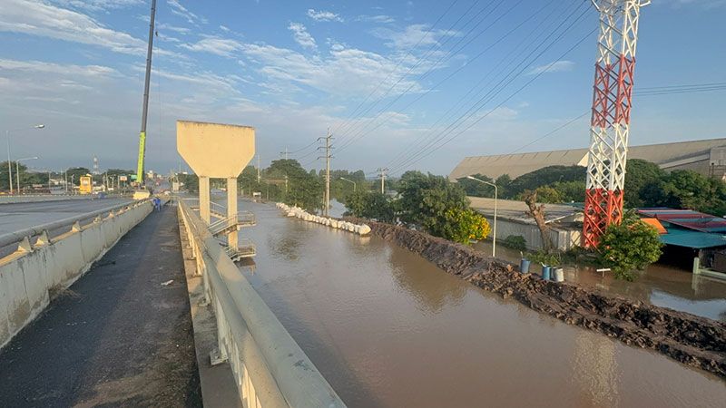 สะพานป่าโมกเปิดการจราจรได้แล้ว แบบสวนเลน ฝั่งเข้าตลาดไปป่าโมก หลังเจ้าหน้าที่กู้สถานการณ์น้ำลอดพังไหลทะลัก เข้าท่วมถนนเส้น 33 ป่าโมก-สุพรรณบุรี และตลาดป่าโมก ด้านเจ้าหน้าที่เร่งวางบิ๊กแบ็ก และแบร์ริเออร์เพื่อให้กลับสภาพปกติโดยเร็ว