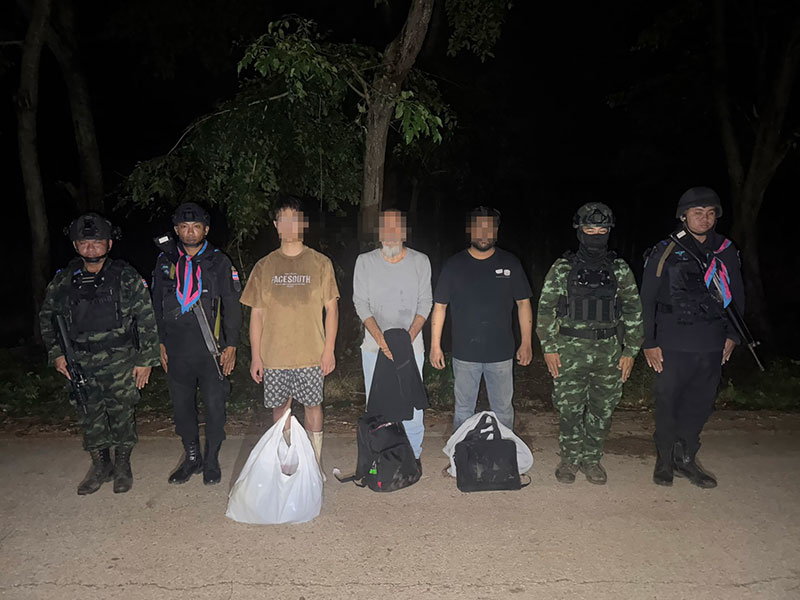 9 พฤศจิกายน 2568 เมื่อเวลา 01.15 น. พ.อ.ชัยณรงค์ กาสี ผู้บังคับหน่วยเฉพาะกิจอรัญประเทศ กองกำลังบูรพา พร้อมด้วย พ.อ.พงศกร เสืองาม ผู้บังคับการชุดควบคุมกรมทหารพรานที่12 นำกำลังพล กองร้อยทหารพรานที่ 1204 ร่วมกับหน่วยเฉพาะกิจอรัญประเทศ และชุดลาดตะเวณ ม.พัน 30 ออกทำการลาดตระเวนป้องกันและสกัดกั้นการลักลอบข้ามแดนโดยผิดกฎหมายและการลักลอบขนสินค้าข้ามแดนผิดกฎหมาย บริเวณช่องทางธรรมชาติริมชายแดนท้ายหมู่บ้านโนนขี้เหล็ก ต.ผ่านศึก อ.อรัญประเทศ จ.สระแก้ว ได้ตรวจพบชายชาวต่างชาติ 3 คน (จีน,อเมริกันและอินเดีย)กำลังเดินเท้าลักลอบข้ามแดนจากฝั่งกัมพูชาเข้ามาในประเทศไทย จึงนำกำลังเข้าควบคุมตัวไว้ได้ ไม่มีเอกสารอนุญาตเข้าประเทศไทยแต่อย่างใด จึงควบคุมตัวมาทำการซักถามโดยผ่านล่าม ที่ กองร้อยทหารพรานที่1204 ต.ผ่านศึก อ.อรัญประเทศ จ.สระแก้ว