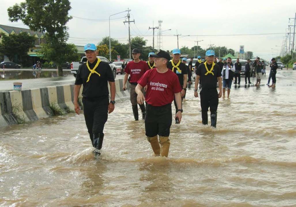 จากนั้นเวลา 15.00 น. ผบช.ภ.1 นำคณะ ลงเรือตรวจเยี่ยมและมอบสิ่งของบำรุงขวัญให้ผู้ประสบอุทกภัย (ถุงยังชีพและยารักษาโรค) ณ อบต.ท่าดินแดง อ.ผักไห่ จ.พระนครศรีอยุธยา